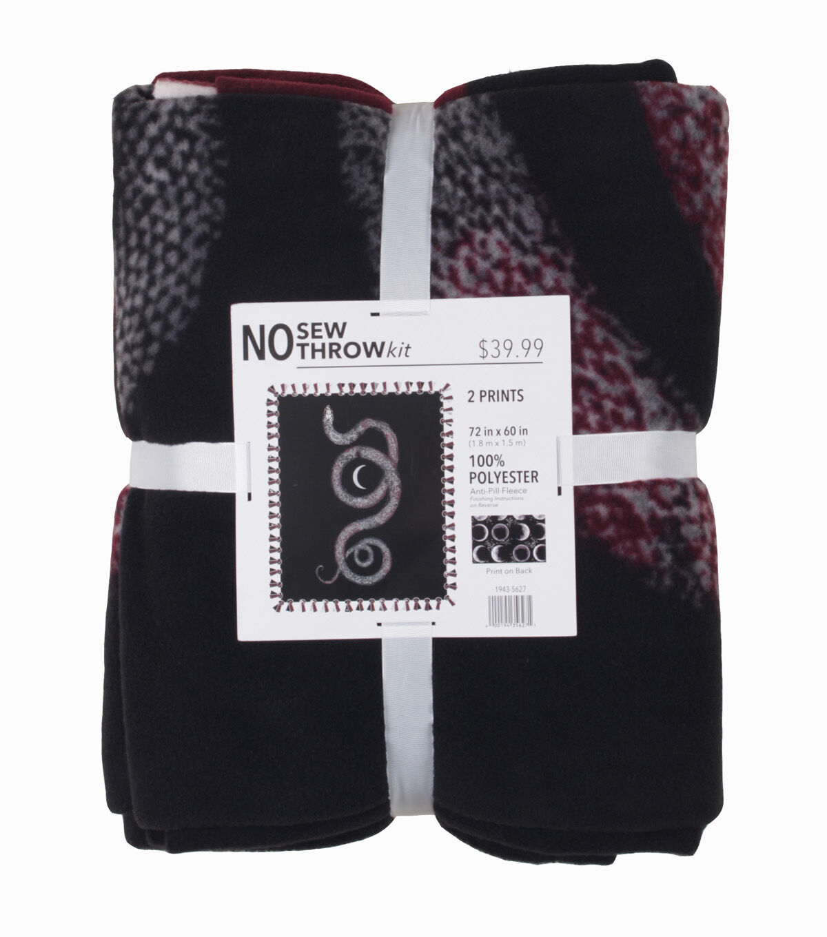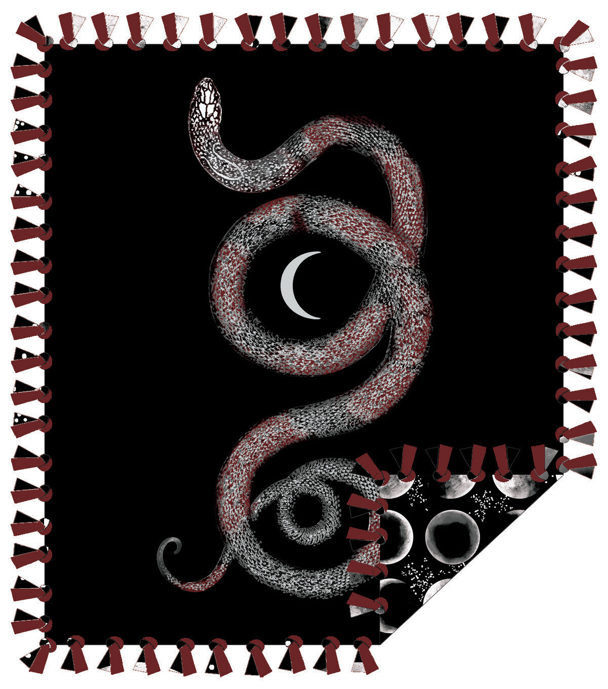 • 72" Wide Black Snakes & Moons No Sew Fleece Blanket