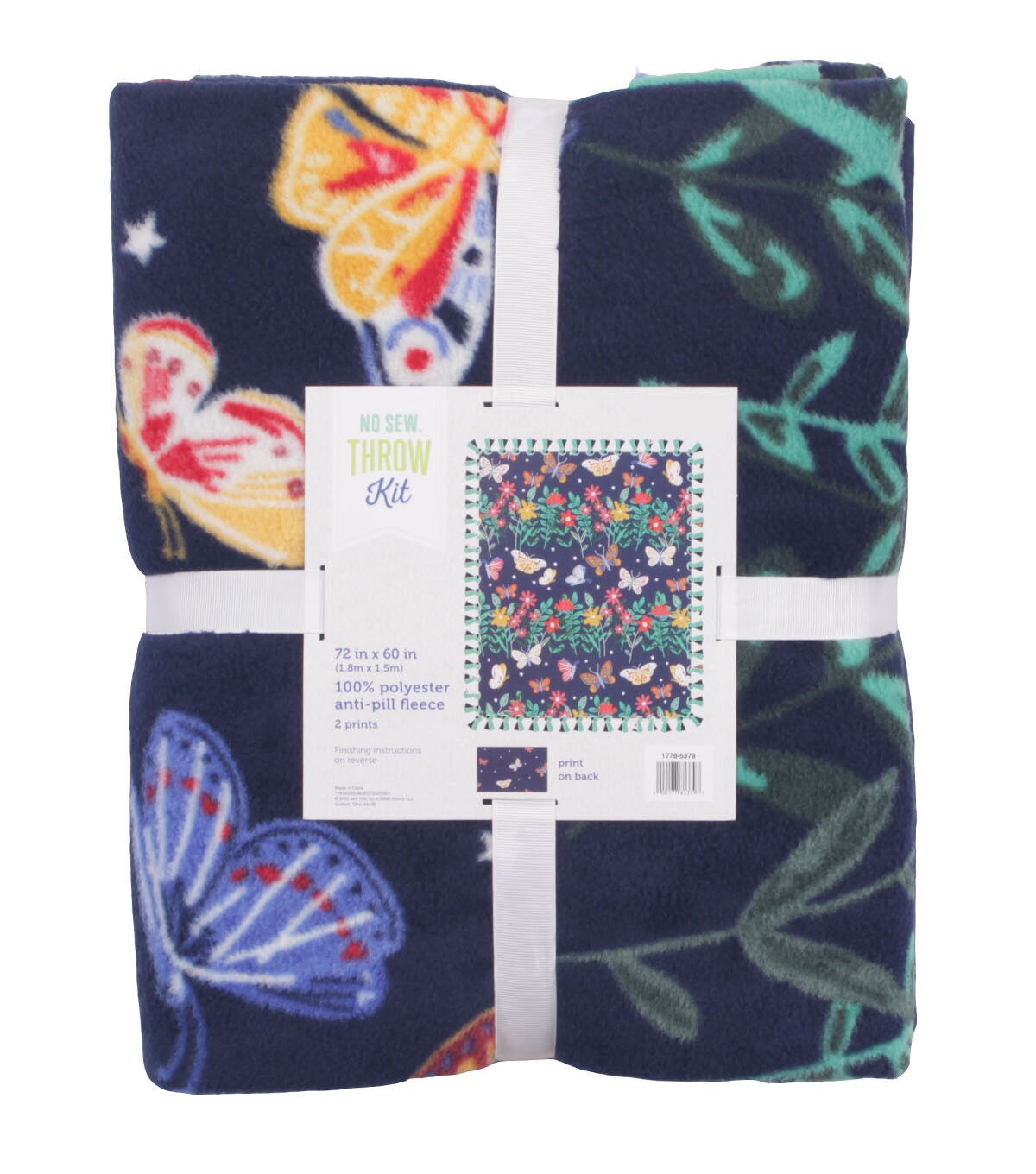 72" Wide Butterflies At Night No Sew Fleece Blanket