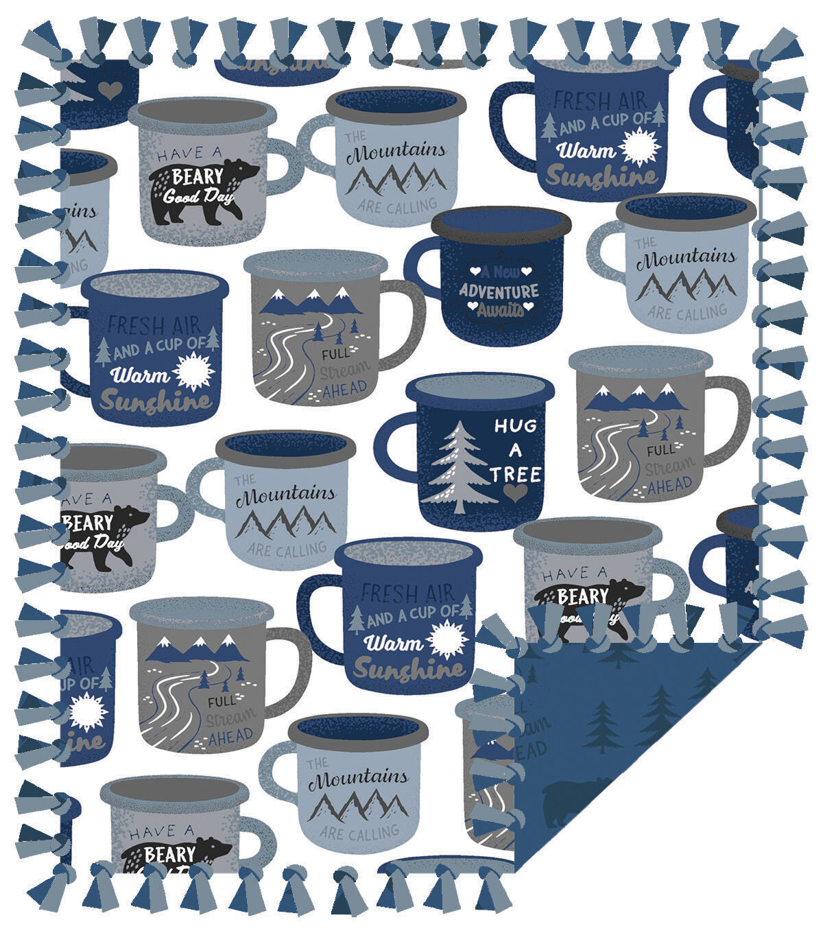 • 72" Wide Camping Mugs No Sew Fleece Blanket