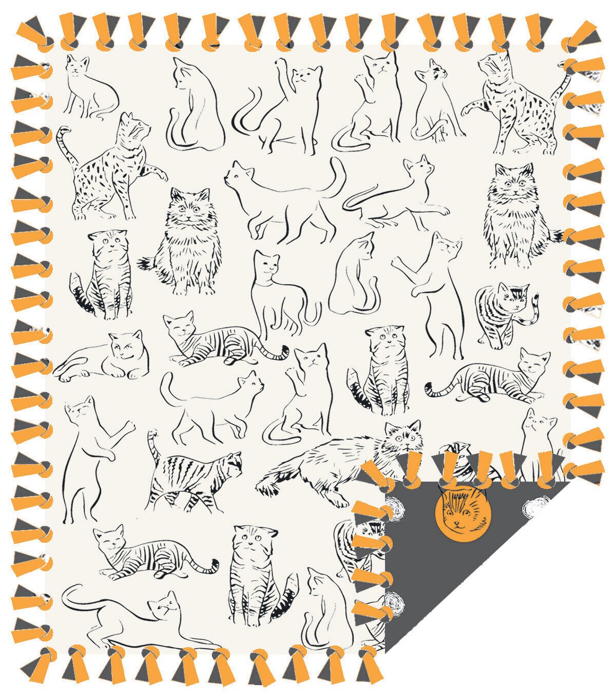 72" Wide Cat Sketch No Sew Fleece Blanket