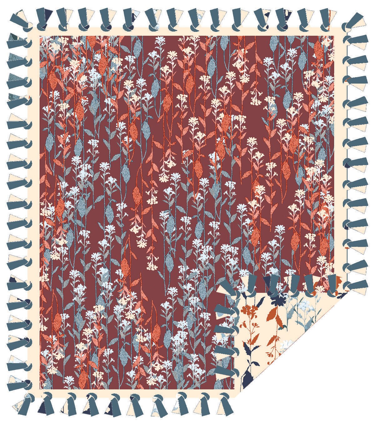 • 72" Wide Cottage Floral No Sew Fleece Blanket