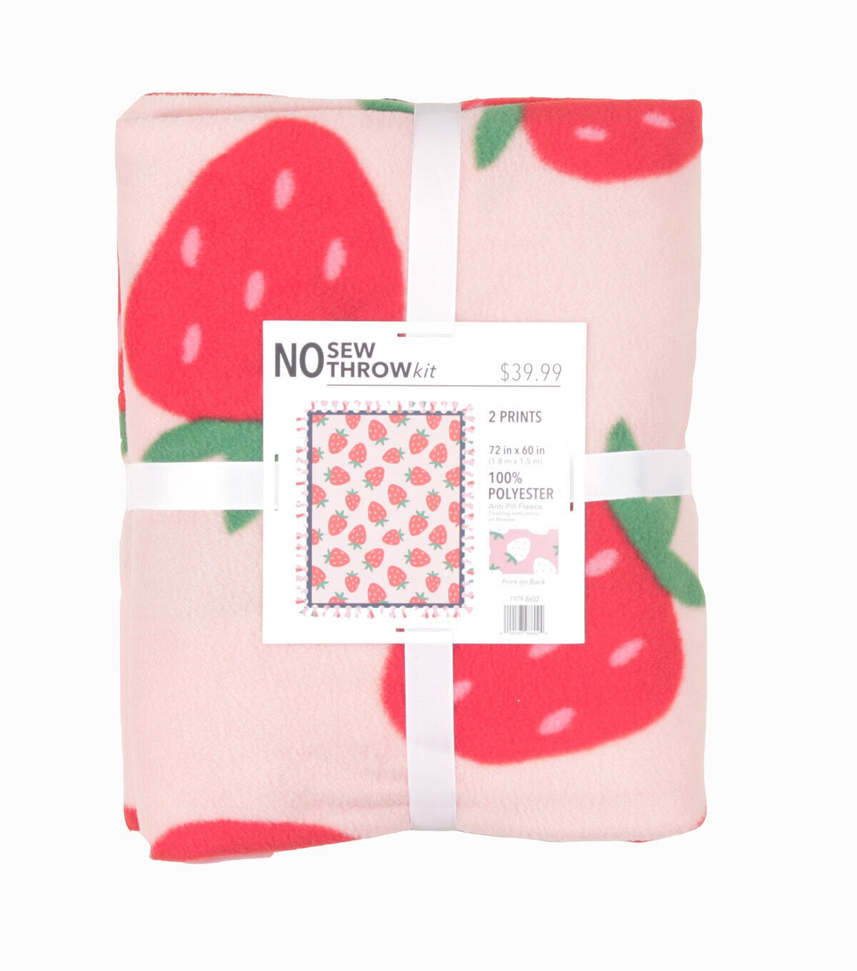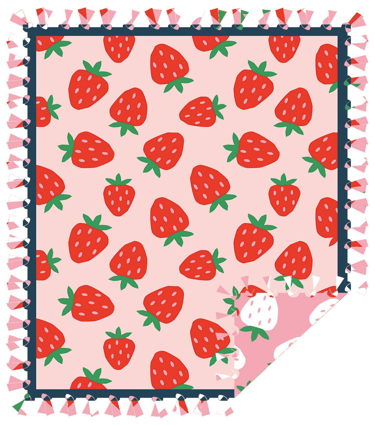 • 72" Wide Picnic Season Strawberry Blast on Pink No Sew Fleece Blanket