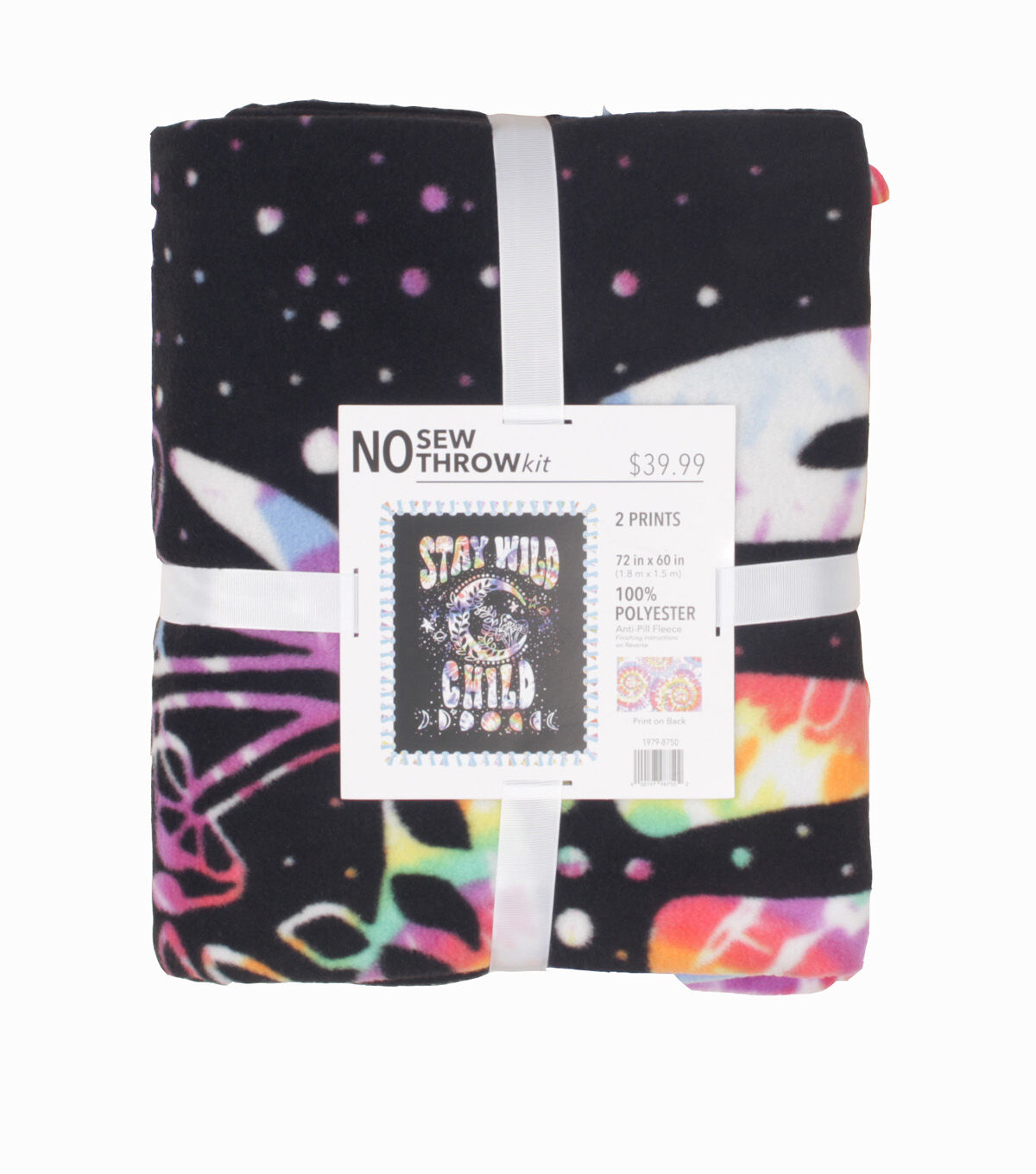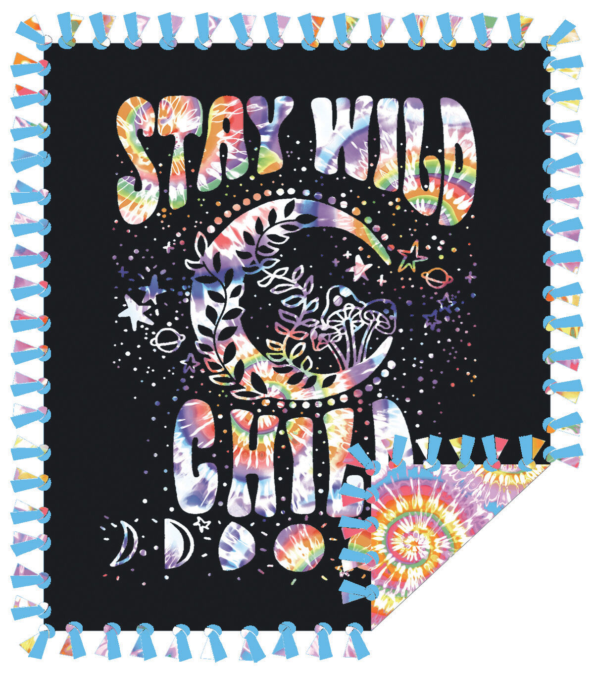 • 72" Wide Stay Wild Child on Black No Sew Fleece Blanket