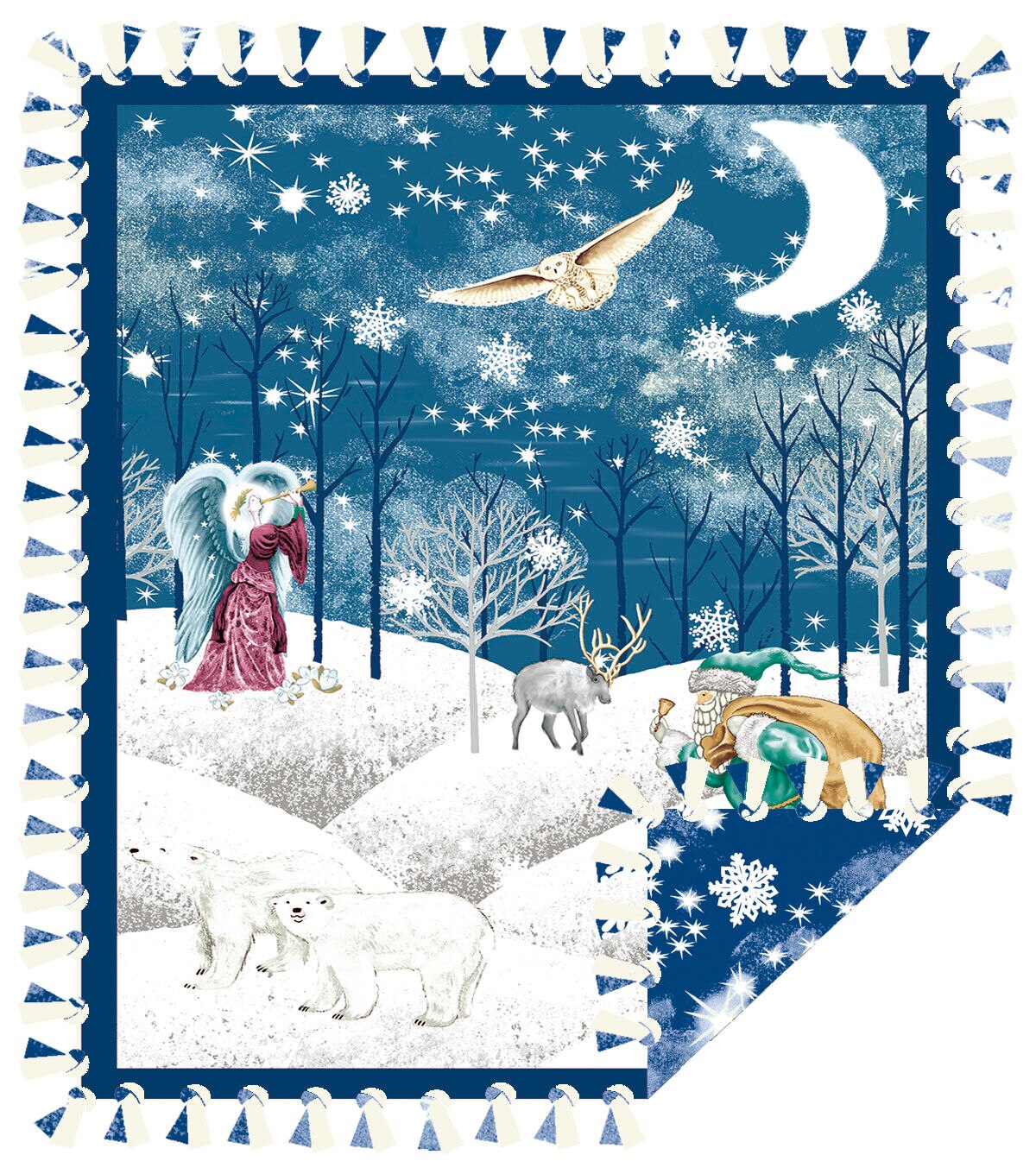 • 72" Winter Solstice Night Mountainscape No Sew Throw Fleece Blanket