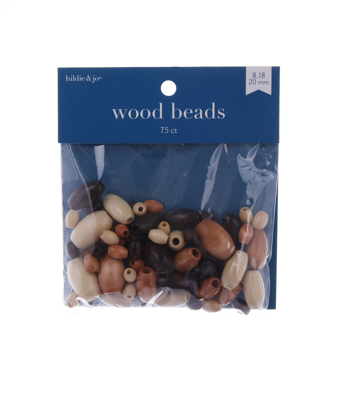 Let the hildie & jo Assorted Wooden Beads - Earth Tones add a unique look to your handmade jewelry creations. This pack contains 75 wooden beads in a variety of sizes and designs. You can add them to statement jewelry pieces like necklaces, danglers, bracelets and more.