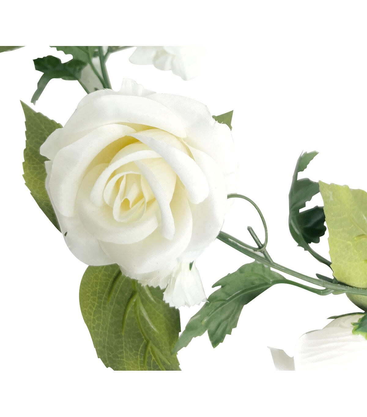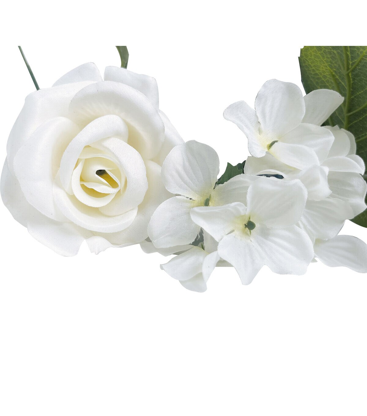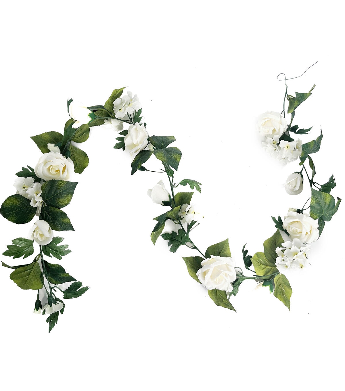 Elevate the look of any wall in your home with the Bloom Room Rose & Hydrangea Garland in white. This stunning faux garland features a beautiful combination of hydrangeas and roses in white, interspersed with green-hued leaves. Perfect for your home decor, this garland can also be used to spruce up your wedding decor.
