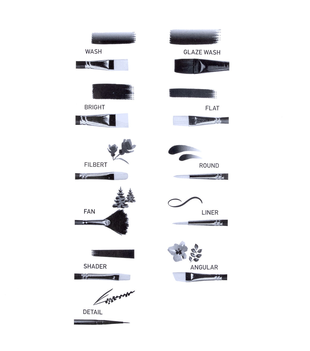 An assortment of brush shapes make these brush sets ideal for beginning artists.