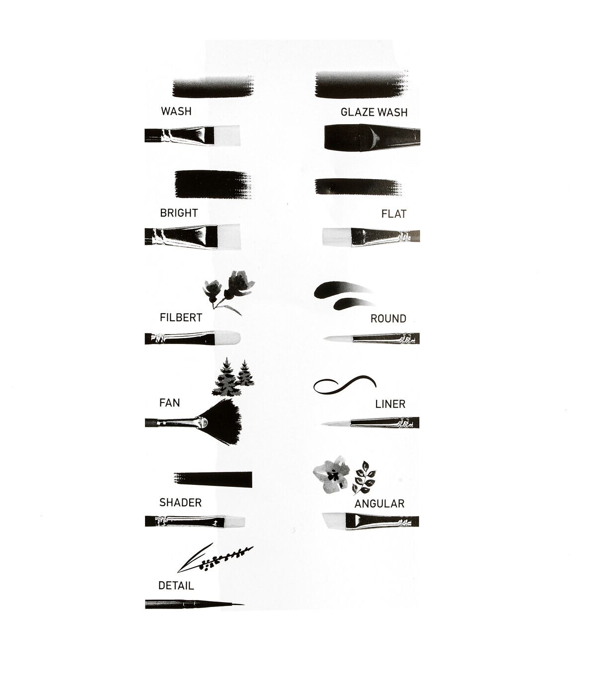 An assortment of brush shapes make these brush sets ideal for beginning artists.