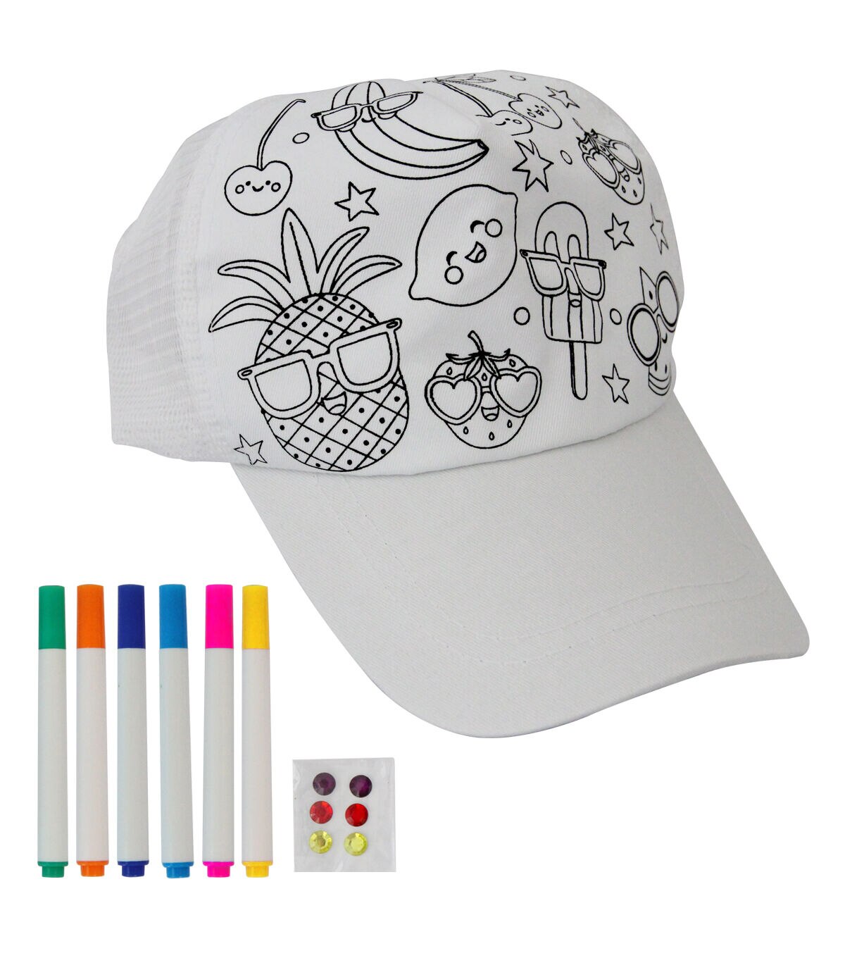 With six markers and a baseball cap included, you'll have everything you need to get started. The cap features fun fruit designs that are just waiting for your personal touch. Whether you're a seasoned artist or just looking for a fun way to pass the time, this kit is perfect for all skill levels.