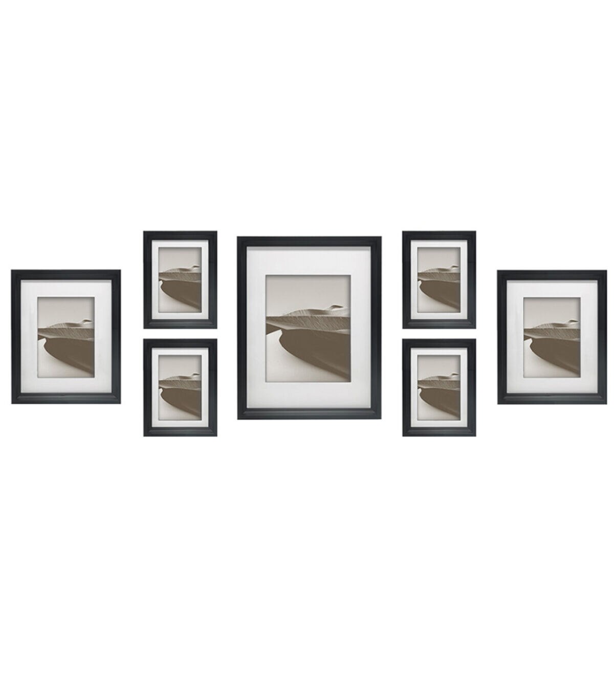 A versatile set for any art or photo enthusiast, the Place & Time 7-pack Black Matted Wall Gallery Frame Set offers frames in varying sizes to suit different display preferences. From larger 11x14 inch frames to smaller 5x7 inch and 4x6 inch options, these frames cater to diverse photo sizes both with and without mats. Each frame, crafted with real glass, ensures that your cherished memories remain vibrant and clear. The sawtooth hanger streamlines the mounting process, making it an elegant and functional addition to any space