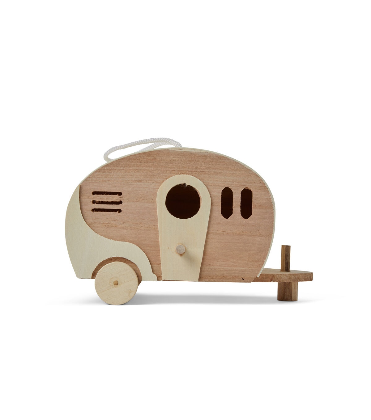 The Park Lane Wooden Camper Birdhouse will make crafting fun for your kids. This unfinished birdhouse is shaped like a camper and includes a string loop on top for ease of hanging. Make your little ones color it in bright hues to attract their favorite birdies. Use the colored version to complete your porch decor.