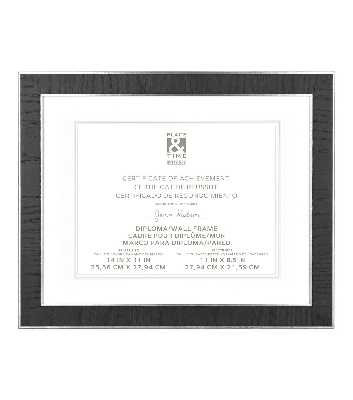 Preserve and present your accolades in this luxurious two-tone frame. This wooden frame showcases a matte black boundary with a touch of pewter for an added touch of elegance. Coupled with a beveled mat, it ensures that your 8.5x11 certificate stands out brilliantly. Designed for wall placement, it provides a touch of sophistication to any setting.