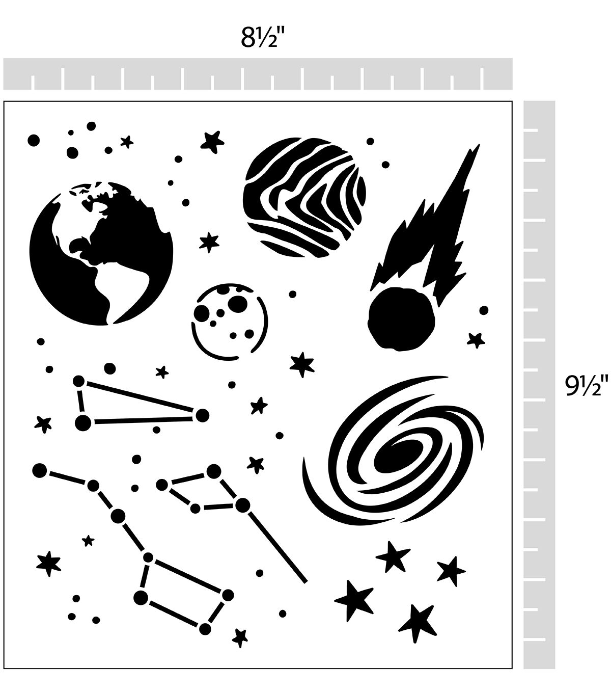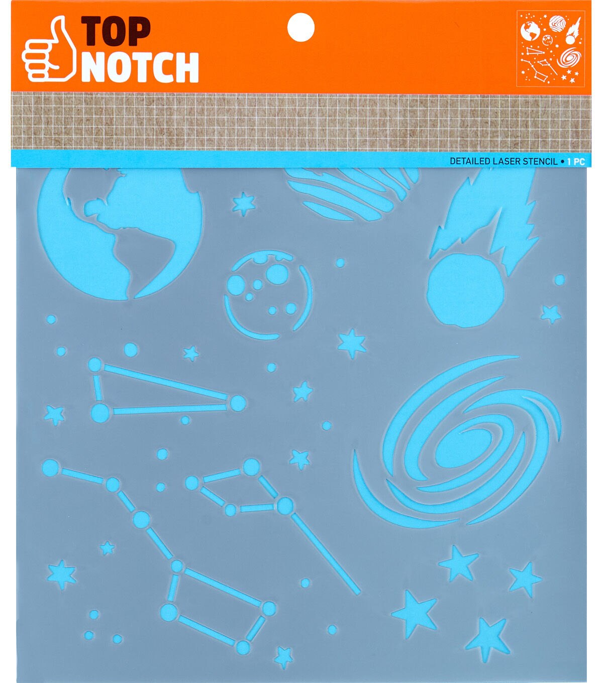 The Top Notch Celestial Stencil Sheet will elevate the fun of your crafts. This single stencil sheet features multiple space shapes and icons for added charm to your projects. Durable and reusable, this mylar stencil sheet cleans up easily with mild soap and warm water. Add the Top Notch Celestial Stencil Sheet to your collection for an out-of-this-world finished project.