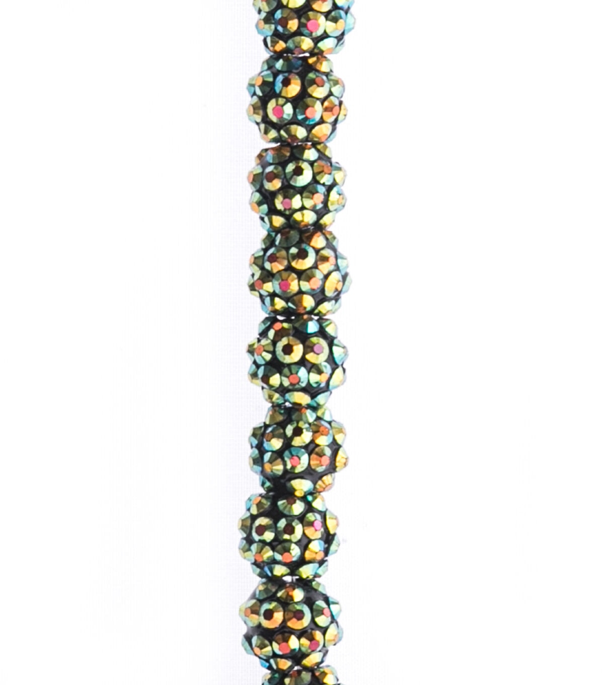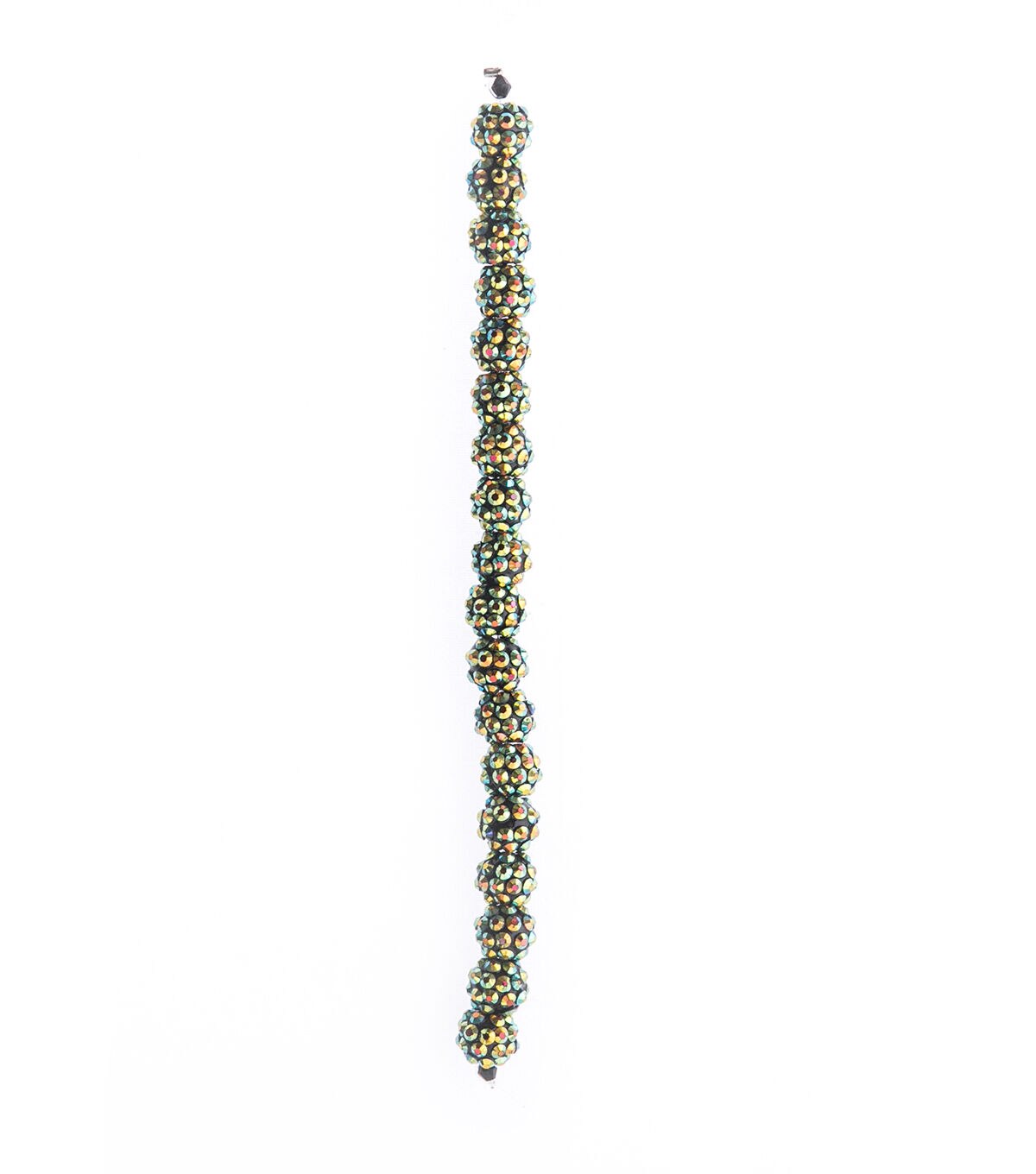 Add drama and sparkle to your jewelry creations with the hildie & jo Resin Aurora Borealis Rhinestone Strung Beads - Dark Green. These pretty lightweight resin beads are adorned with rhinestones. They sport an aurora borealis finish. Team them with beads and charms to create bracelets, anklets, neckpieces and more.
