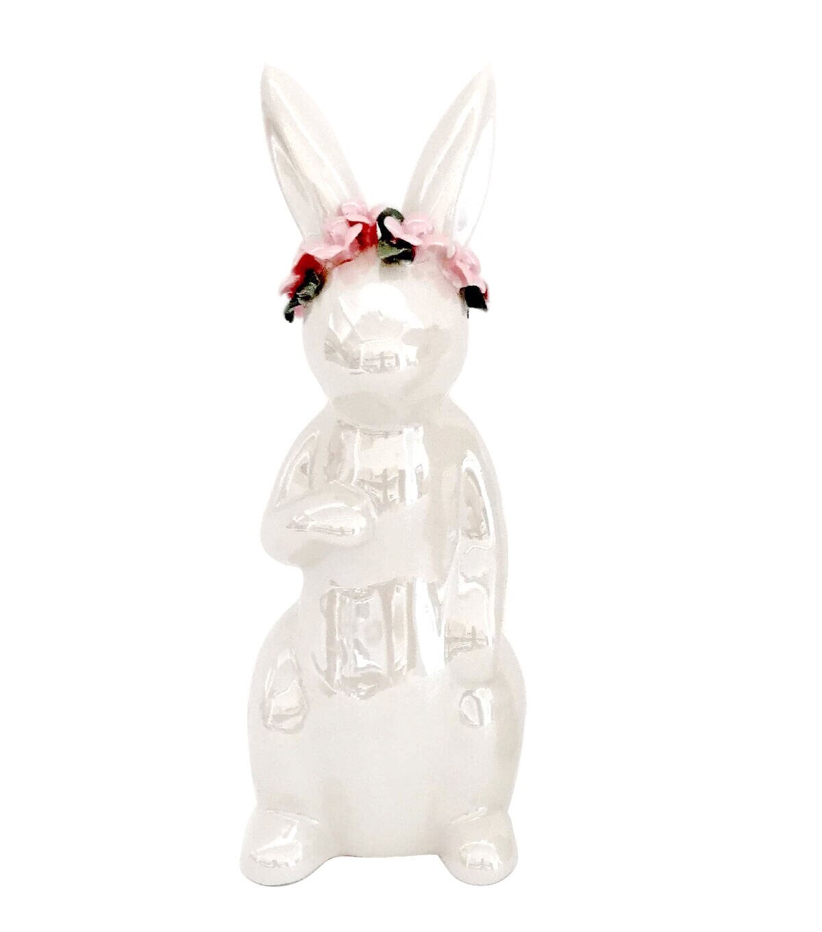 Add the pretty Easter Iridescent Ceramic Bunny With Flower Crown by Place & Time to your Easter-themed foyer table decor and it will surely impress your guests and friends. This ceramic bunny critter comes adorned with a pink-hued floral crown. You can also use it as a standalone accent for the mantel.