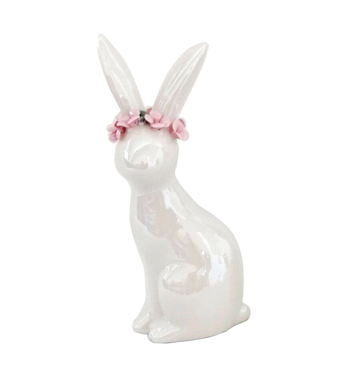 The Easter White Ceramic Bunny With Flower Crown by Place & Time will make a great addition to your Easter decor. This ceramic tabletop accent in white is shaped like a bunny with a floral crown in pink. You can team it with Easter egg accents to create a lovely festive scene for the entryway table.