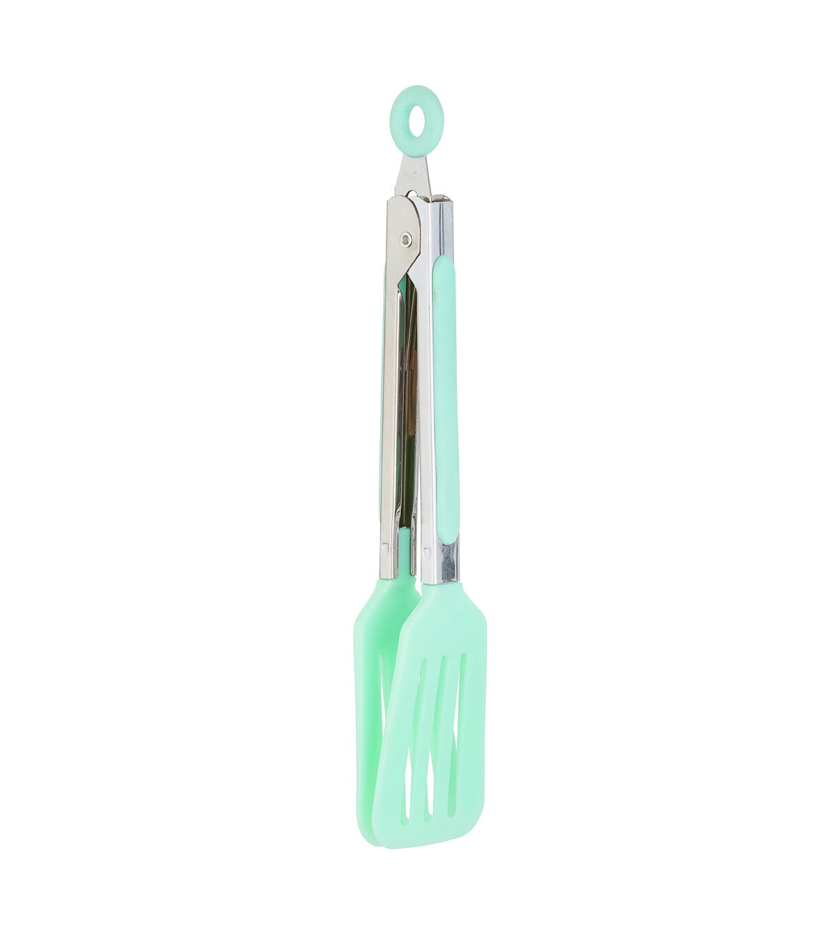 Use these mini spatula tongs for all your serving needs. They feature heat-resistant nylon heads and stainless steel handles. The mini size is ideal for kids, small living spaces, travel, and smaller foods/recipes. For easy storage, use the pull ring locking mechanism to keep the tongs closed.