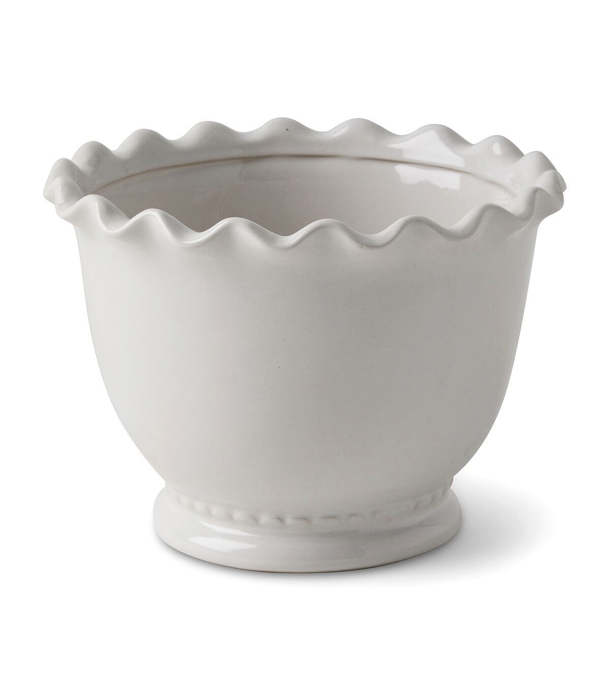 The Spring Ceramic Planter With Scalloped Edge by Place & Time will blend right into your minimalistic home decor theme. This ceramic planter in white is designed with a scalloped edge. Plant your favorite seasonal beauties in it and display it on a table next to a window or on the balcony. You can also team this planter with others for added charm.