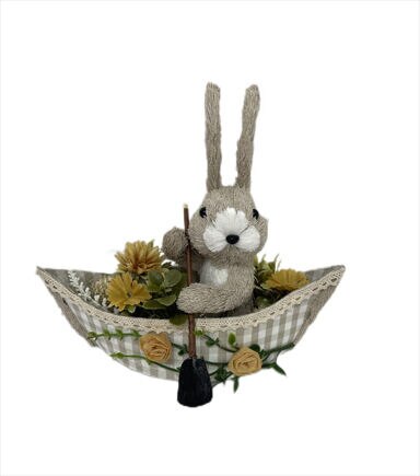 Up the cuteness quotient of your seasonal decor with the Spring Rabbit With Boat by Bloom Room. This critter resembles a rabbit sitting in a boat filled with flower accents. You can display it on a side table, mantel or a floating shelf. It will also make a wonderful addition to the gift basket of a dear one.