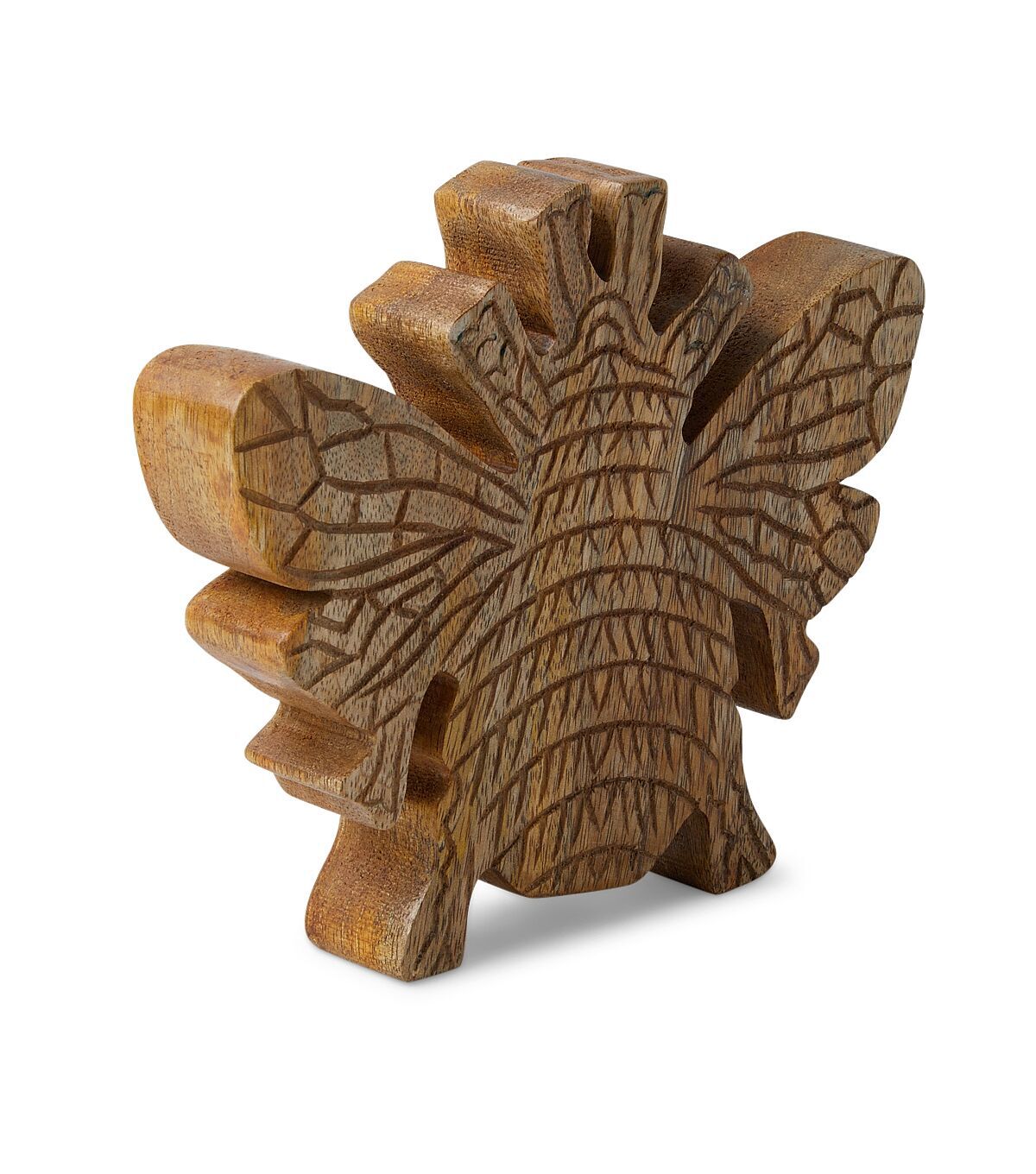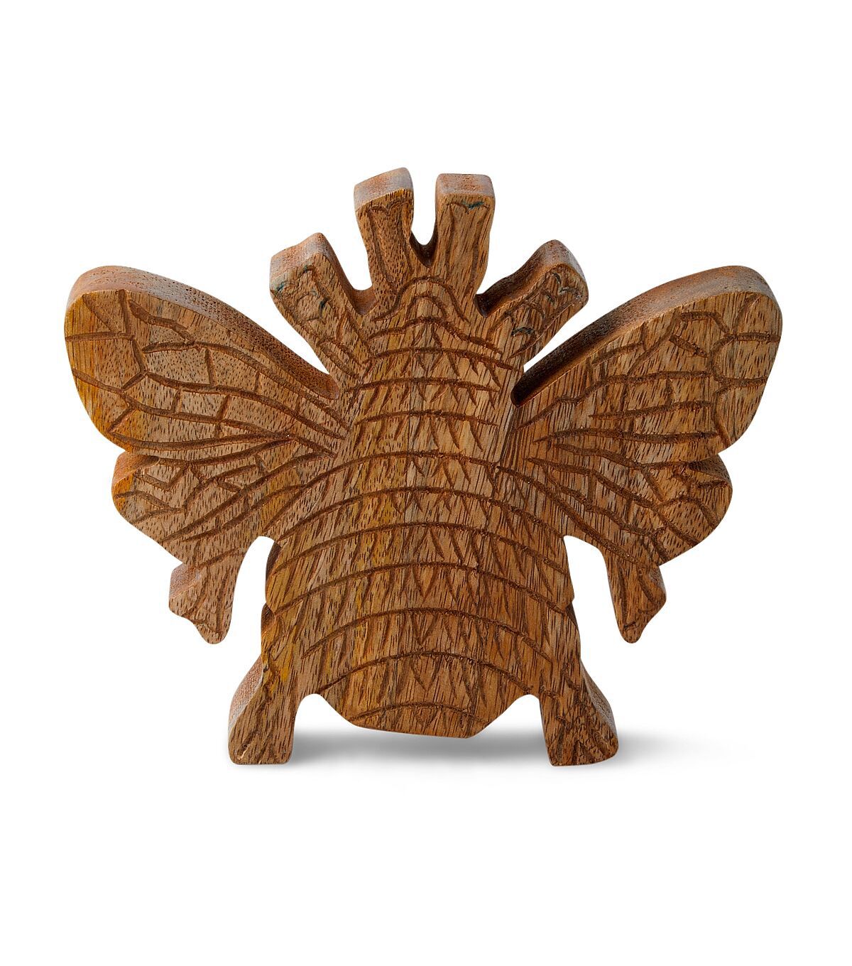 Transform your living space into a serene oasis with the 8" Spring Wood Bee by Place & Time. Made from 100% mango wood, this beautiful decorative piece is perfect for adding a touch of nature to your indoor space. The intricate details of the bee's wings and body make it a stunning addition to any room, while the spring design adds a playful touch.