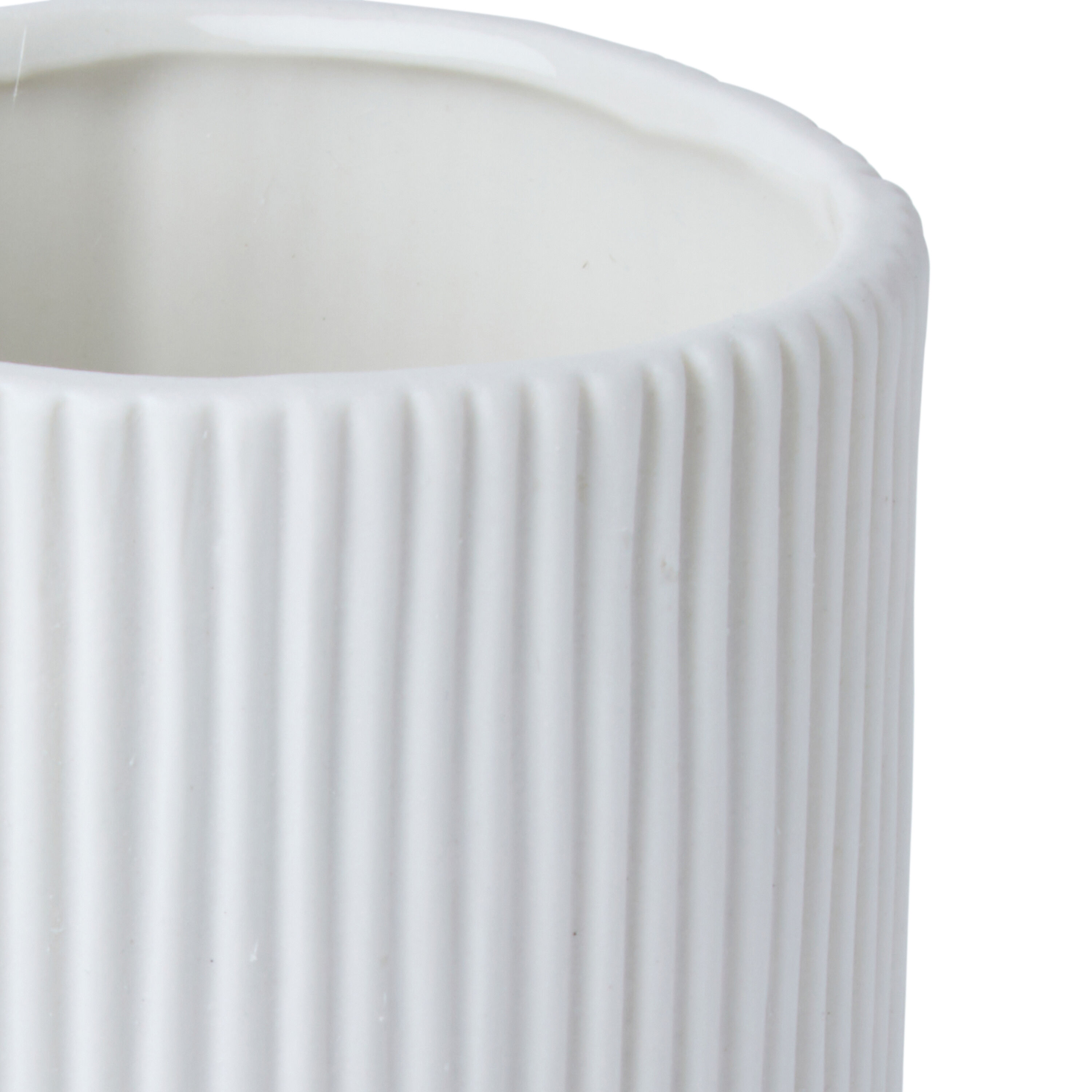 Take your crafting skills to a new level with the Park Lane Short Ceramic Vase - Stripes. This unfinished vase showcases a striped texture. Color it in your favorite hues and decorate it with glitter before showcasing it on your entryway table. You can also add faux floral stems to the finished version to create a lovely seasonal display.