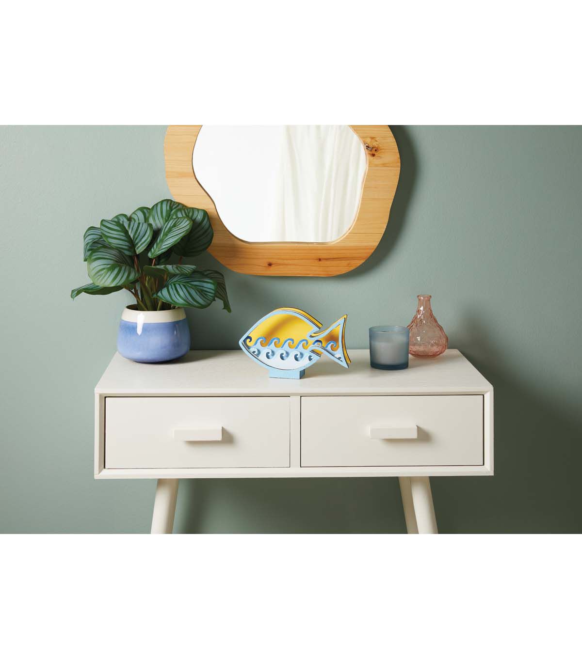 Add a touch of the ocean to your home decor with this charming LED fish tabletop decor. Measuring 8 inches by 4.9 inches, this piece is the perfect size to display on a shelf, mantel, or tabletop. The unfinished wood gives it a rustic feel, while the LED lights add a warm and inviting glow to any room. Whether you live by the beach or just want to bring a little bit of the seaside into your home, this fish decor is sure to make a splash.