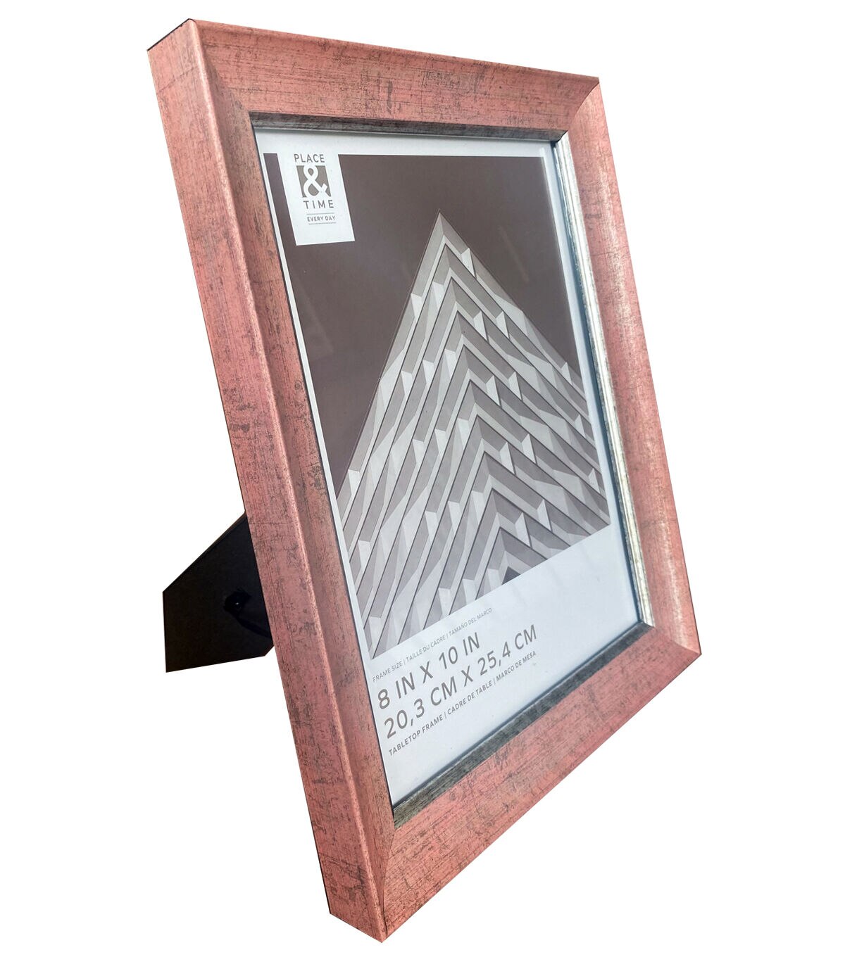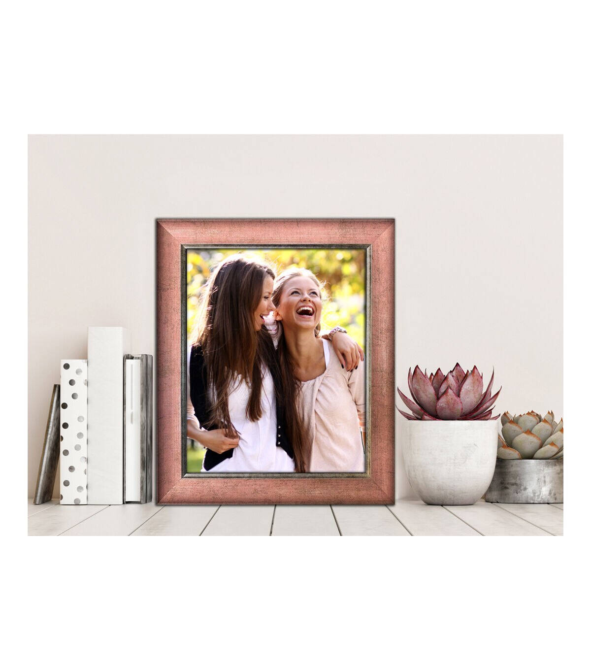 Add a touch of vintage charm to your space with our Flora tabletop frame. The rose gold color of the frame is perfectly complimented by distressed gold piping, creating a pleasing display for any room. The glass face ensures that your treasured photos and art are protected. Delivers ready to hang or display on your mantle or table with the included easel.