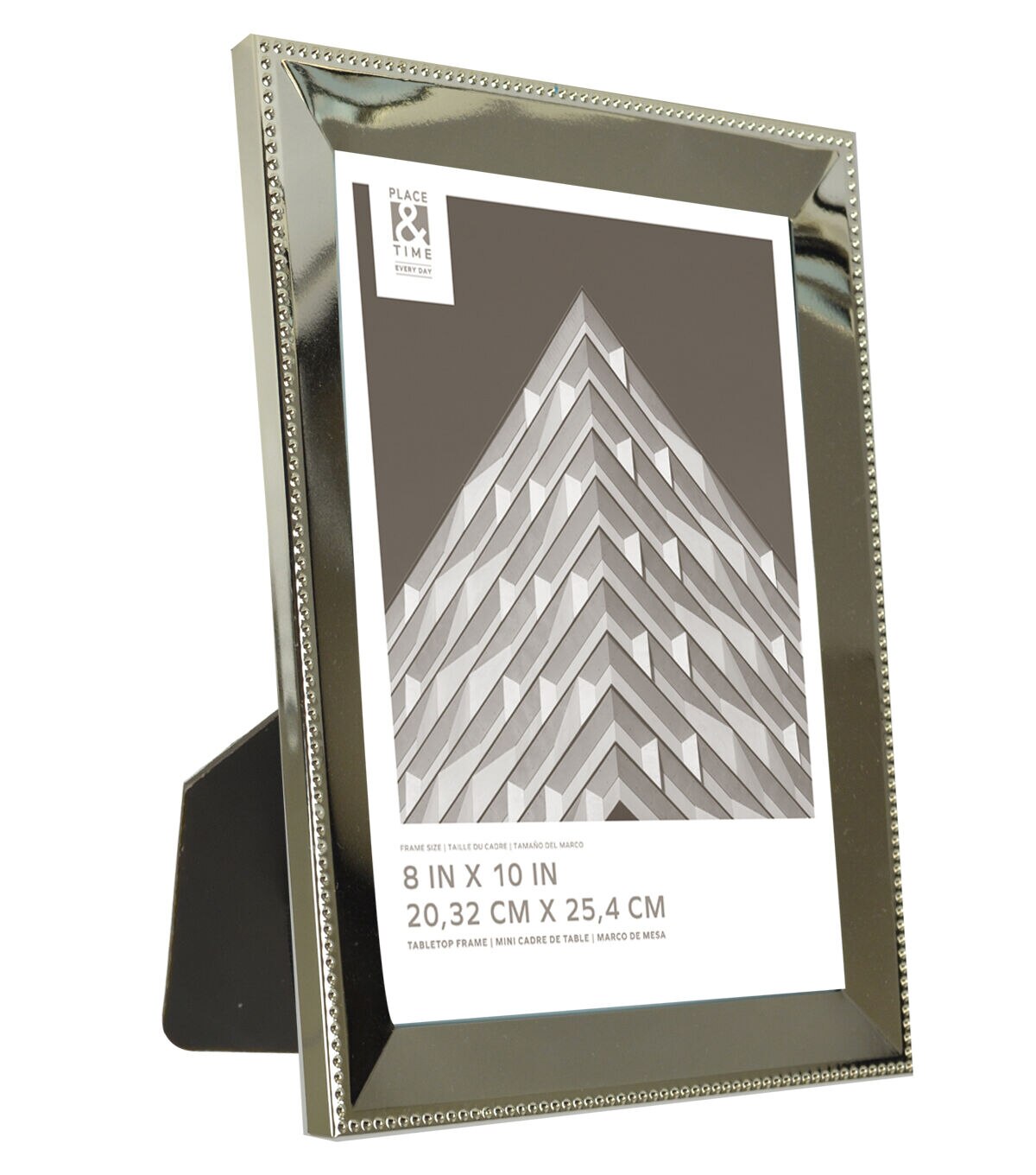 The Silver Slanted Beaded Edge Tabletop Frame by Place & Time will add a touch of elegance to any corner of your living space you place it in. This silver-toned tabletop frame flaunts slanting and beaded edges that enhances its visual appeal. Insert a picture of your family into it and place it on any table.