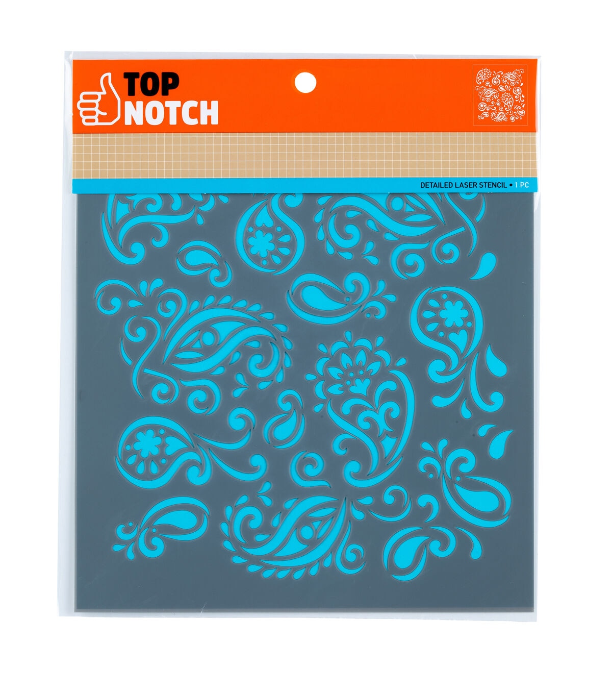 Incorporate a 70s vibe into your crafts with the Top Notch Paisley Delight Stencil Sheet. Featuring multiple paisley designs in a variety of shapes and sizes, this stencil is sure to make your project stand out. Durable and reusable, this mylar stencil sheet is easy to clean up with mild soap and warm water. Stencil a few paisleys on your next project with the Top Notch Paisley Delight Stencil Sheet.Incorporate a 70s vibe into your crafts with the Top Notch Paisley Delight Stencil Sheet. Featuring multiple paisley designs in a variety of shapes and sizes, this stencil is sure to make your project stand out. Durable and reusable, this mylar stencil sheet is easy to clean up with mild soap and warm water. Stencil a few paisleys on your next project with the Top Notch Paisley Delight Stencil Sheet.