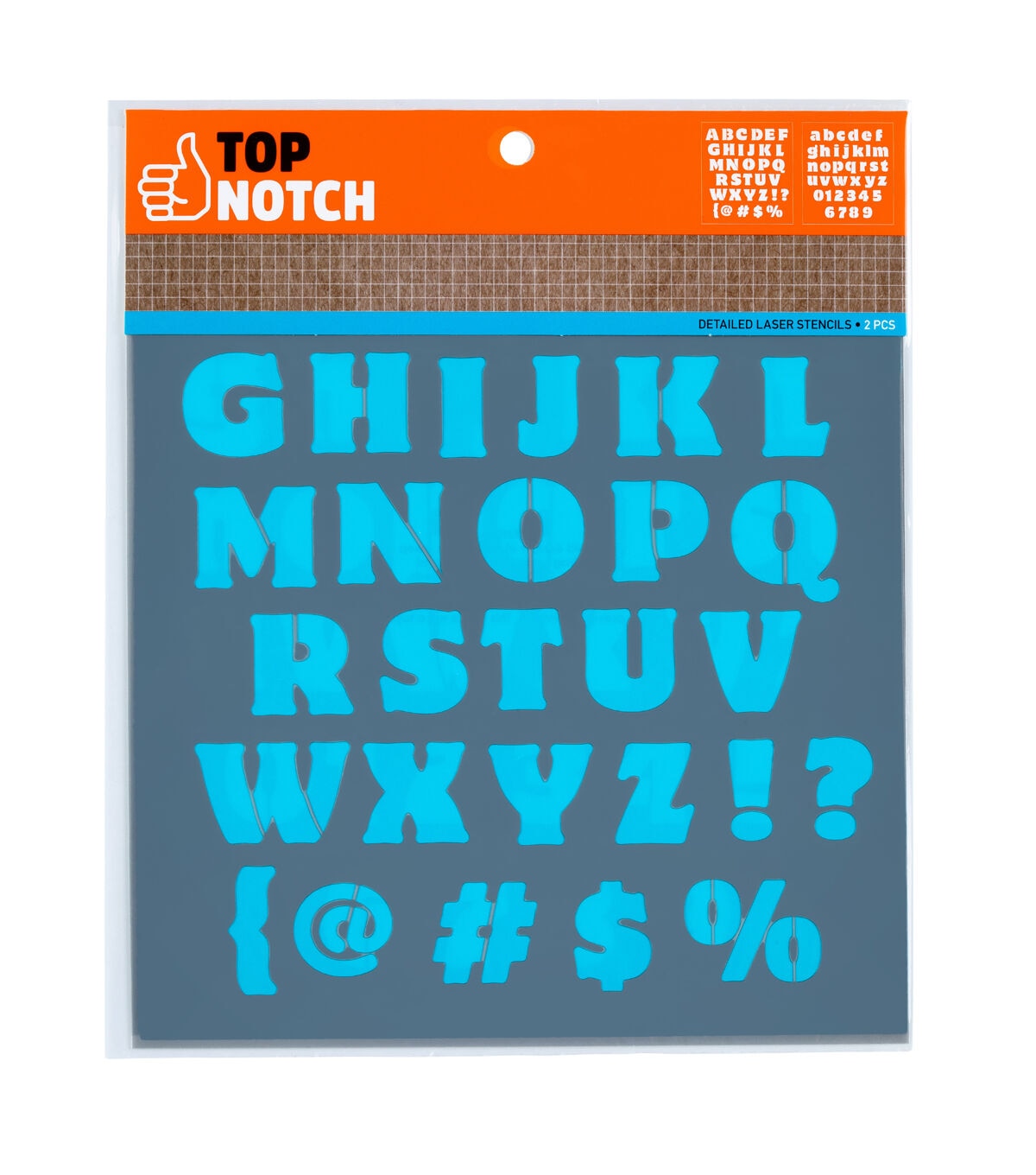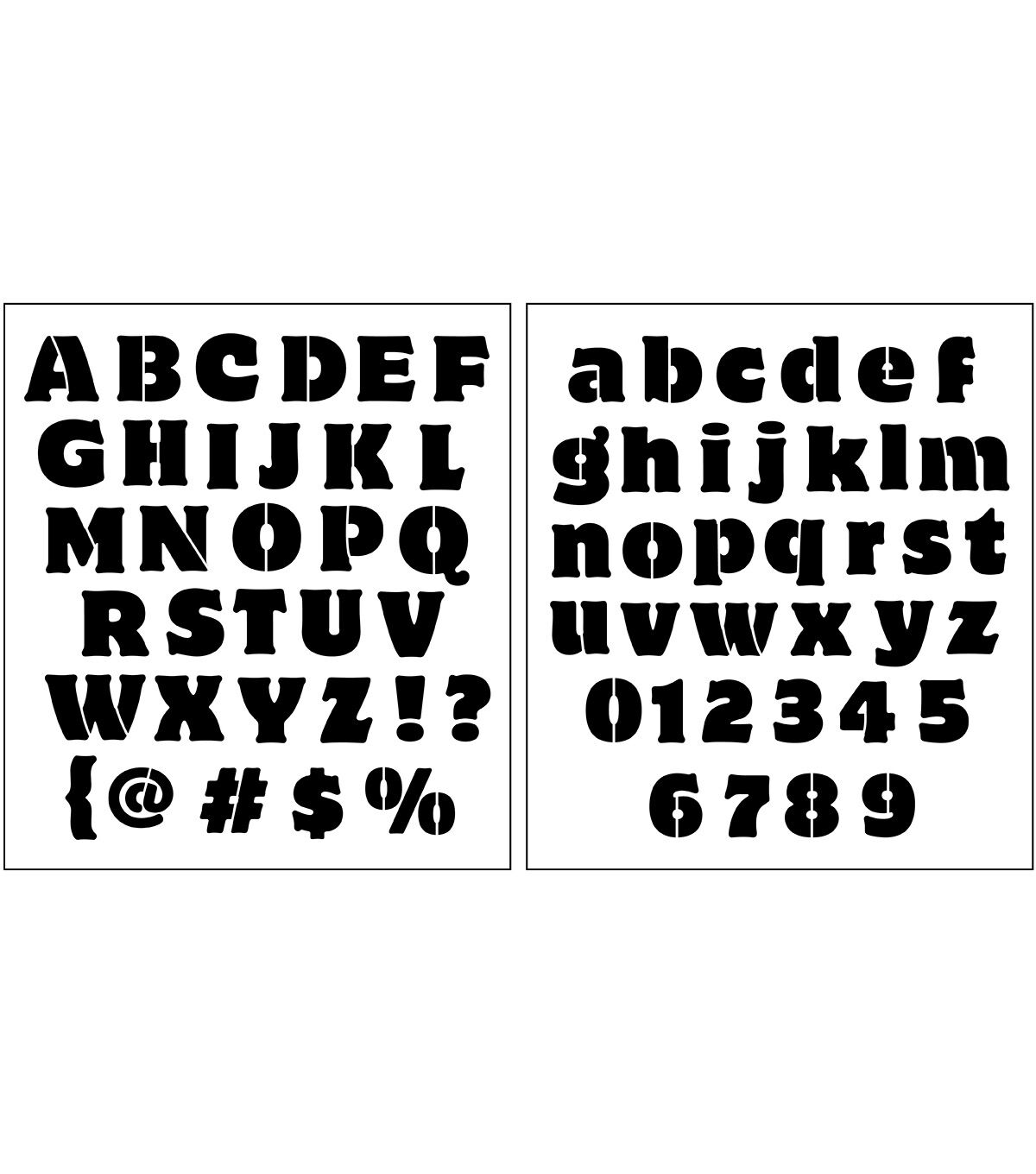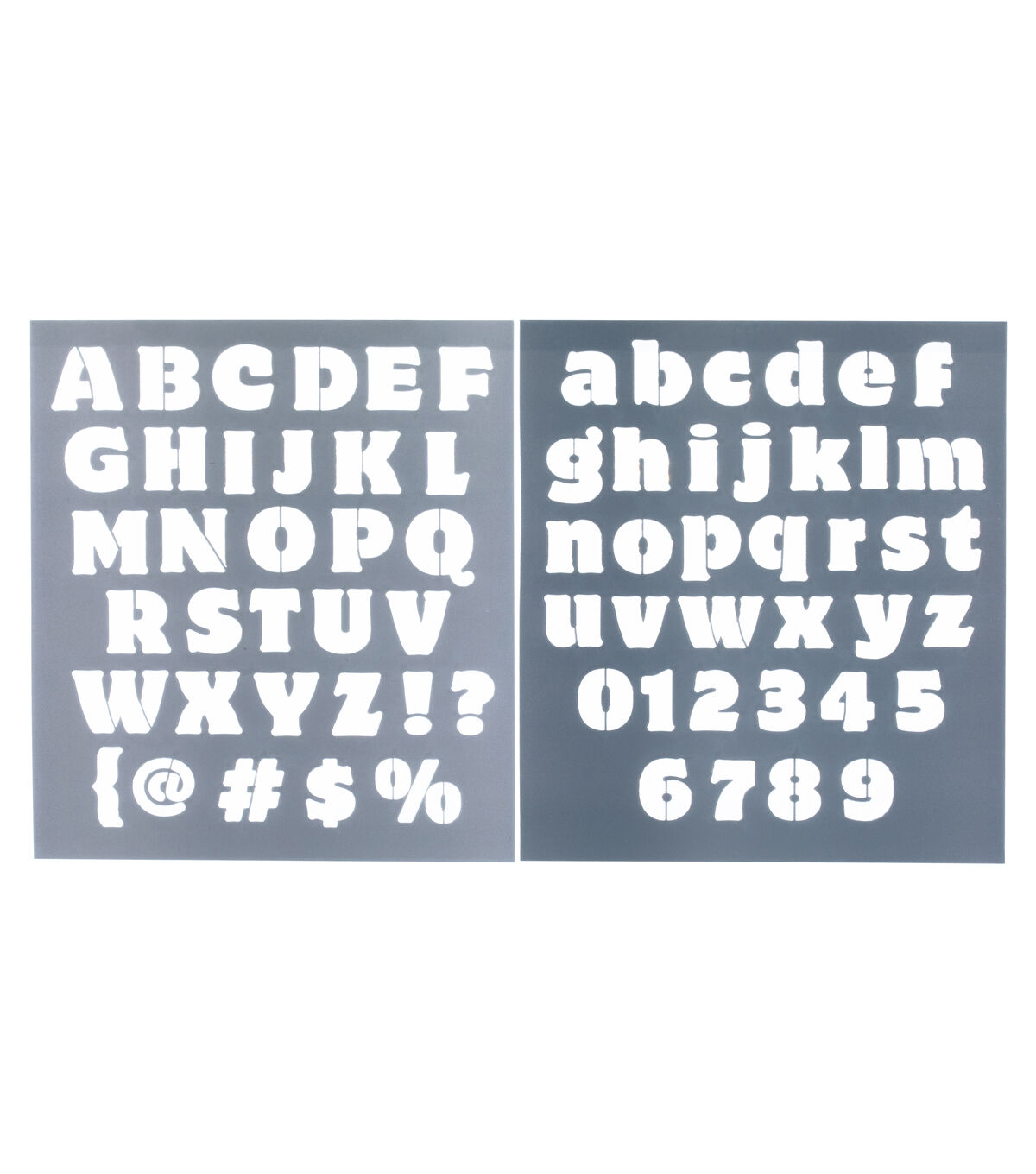 Stencil words and phrases easily with the Top Notch Rounded Block Alphabet Stencil Pack. This 2 piece pack features big and bold block letters to clearly make your message on your creations. Durable and reusable, these mylar stencil sheets are easy to clean up with mild soap and warm water. Add a versatile letter option to your collection with the Top Notch Rounded Block Alphabet Stencil Pack.Stencil words and phrases easily with the Top Notch Rounded Block Alphabet Stencil Pack. This 2 piece pack features big and bold block letters to clearly make your message on your creations. Durable and reusable, these mylar stencil sheets are easy to clean up with mild soap and warm water. Add a versatile letter option to your collection with the Top Notch Rounded Block Alphabet Stencil Pack.