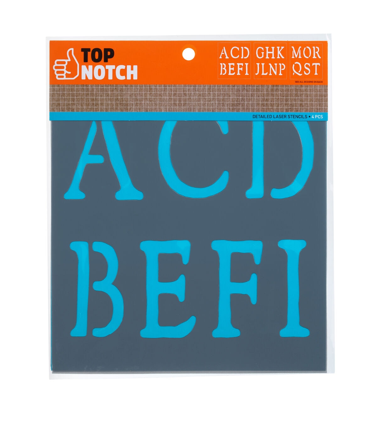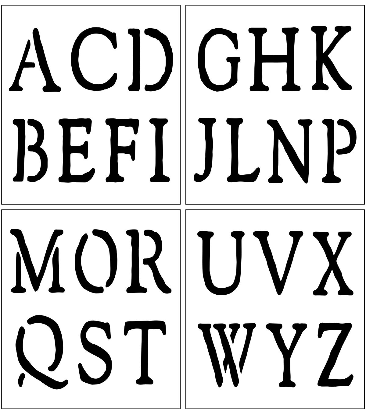 Stencil words and phrases easily with the Top Notch Rustic Alphabet Pack. This 8.5" x 9.5" pack of letters allows the crafter to create any word or phrase for added personalization to a project. Durable and reusable, these mylar stencil sheets are easy to clean up with mild soap and warm water. Add the Top Notch Rustic Alphabet Pack to your stencil collection for a versatile set of letters that are simple and easy to use.Stencil words and phrases easily with the Top Notch Rustic Alphabet Pack. This 8.5" x 9.5" pack of letters allows the crafter to create any word or phrase for added personalization to a project. Durable and reusable, these mylar stencil sheets are easy to clean up with mild soap and warm water. Add the Top Notch Rustic Alphabet Pack to your stencil collection for a versatile set of letters that are simple and easy to use.