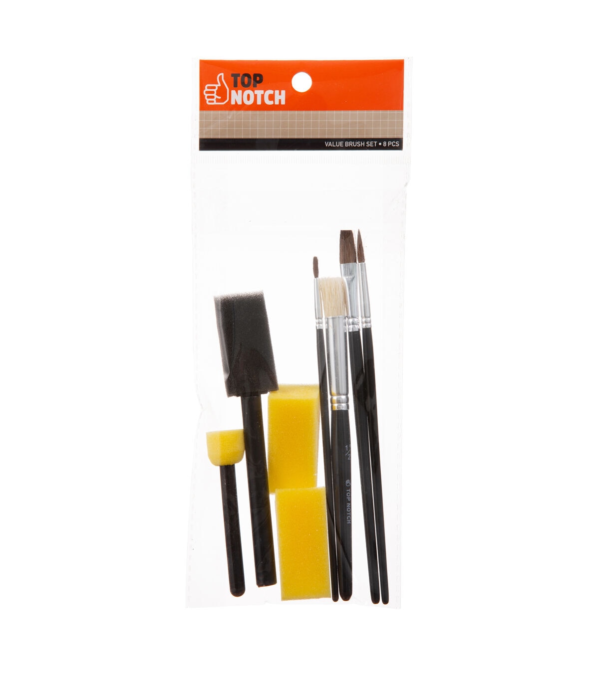 Quality and Value are always top priority for Top Notch. This set features a brown taklon #8 flat, #1 and #7 round, plus a #12 stencil brush, 1" foam brush, 1" foam pouncer and two foam wedges.