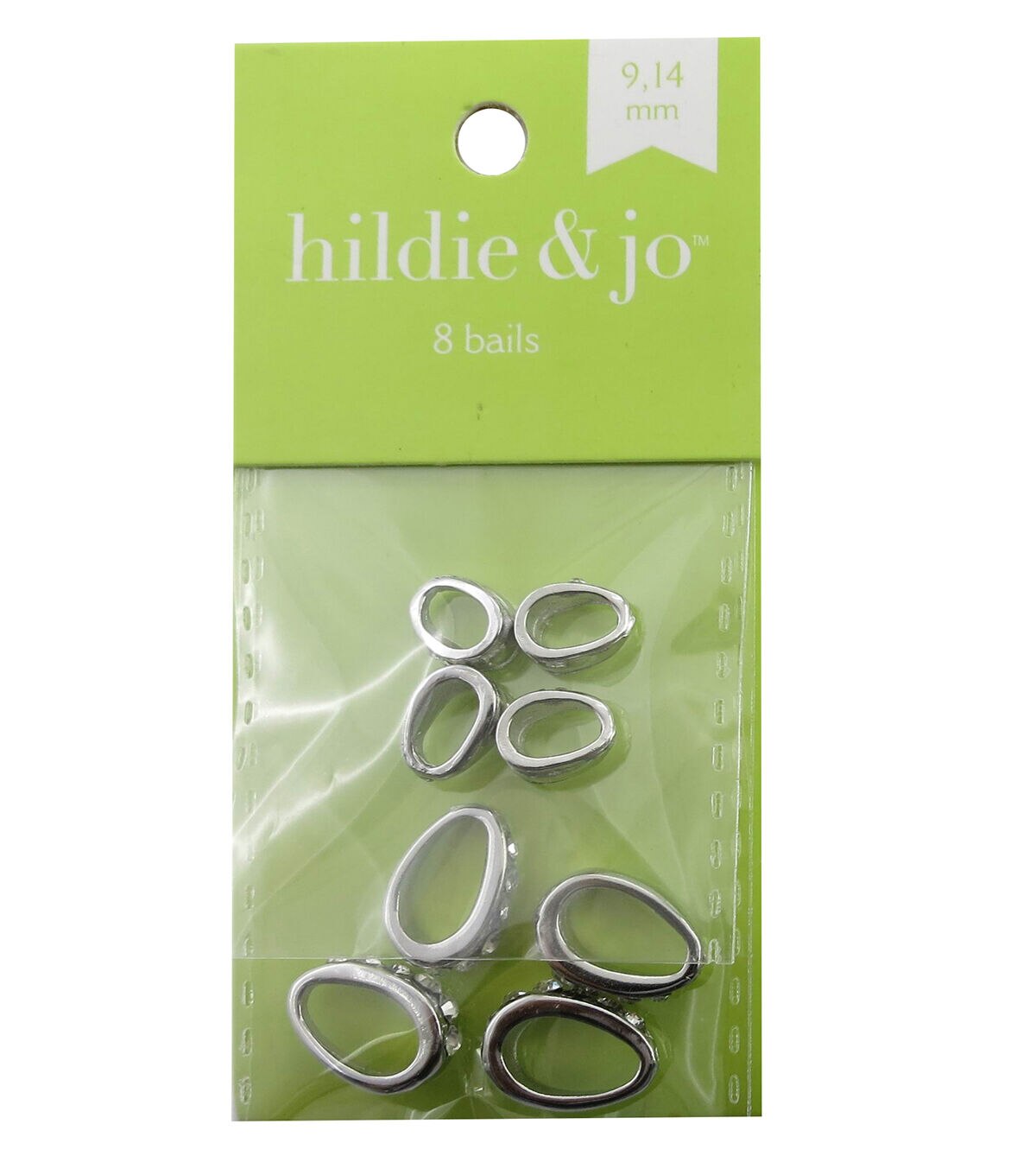 Add a lovely finishing touch to your handmade jewelry creations with the hildie & jo Bails with Clear Crystals - Silver. Designed with a smooth silver-toned finish, these bails have a line of clear crystals in the center for an eye-catching look. These zinc alloy and glass bails come in a pack of eight, measuring 9 mm and 14 mm in size. You can use them to design lovely danglers, backpack charms, keychains and more.