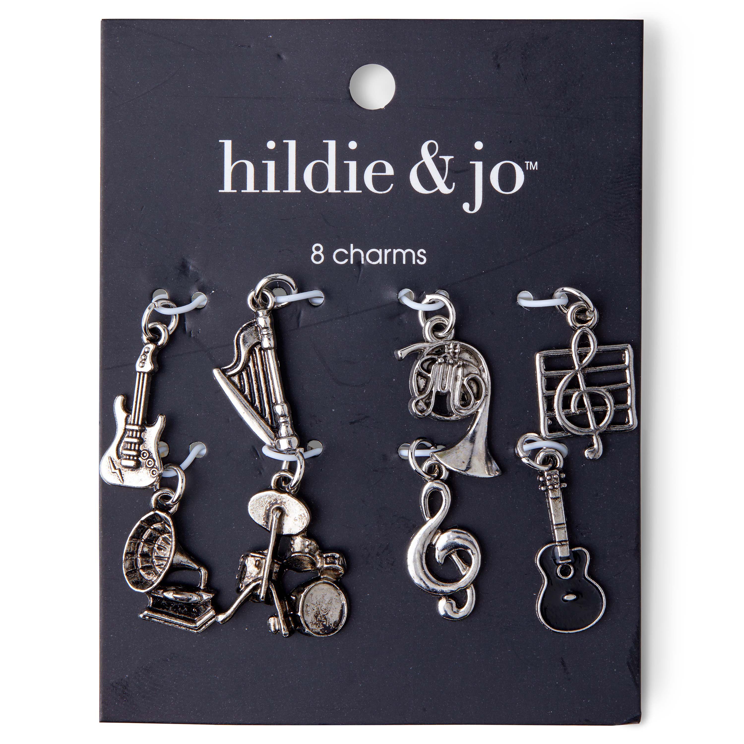 Personalize a DIY craft project using these unique hildie & jo Symbolize Music Charms-Silver. There are eight charms, all in the shape of music icons. All have jump rings for easy attachment. Add these to bracelets, necklaces, keychains and more.