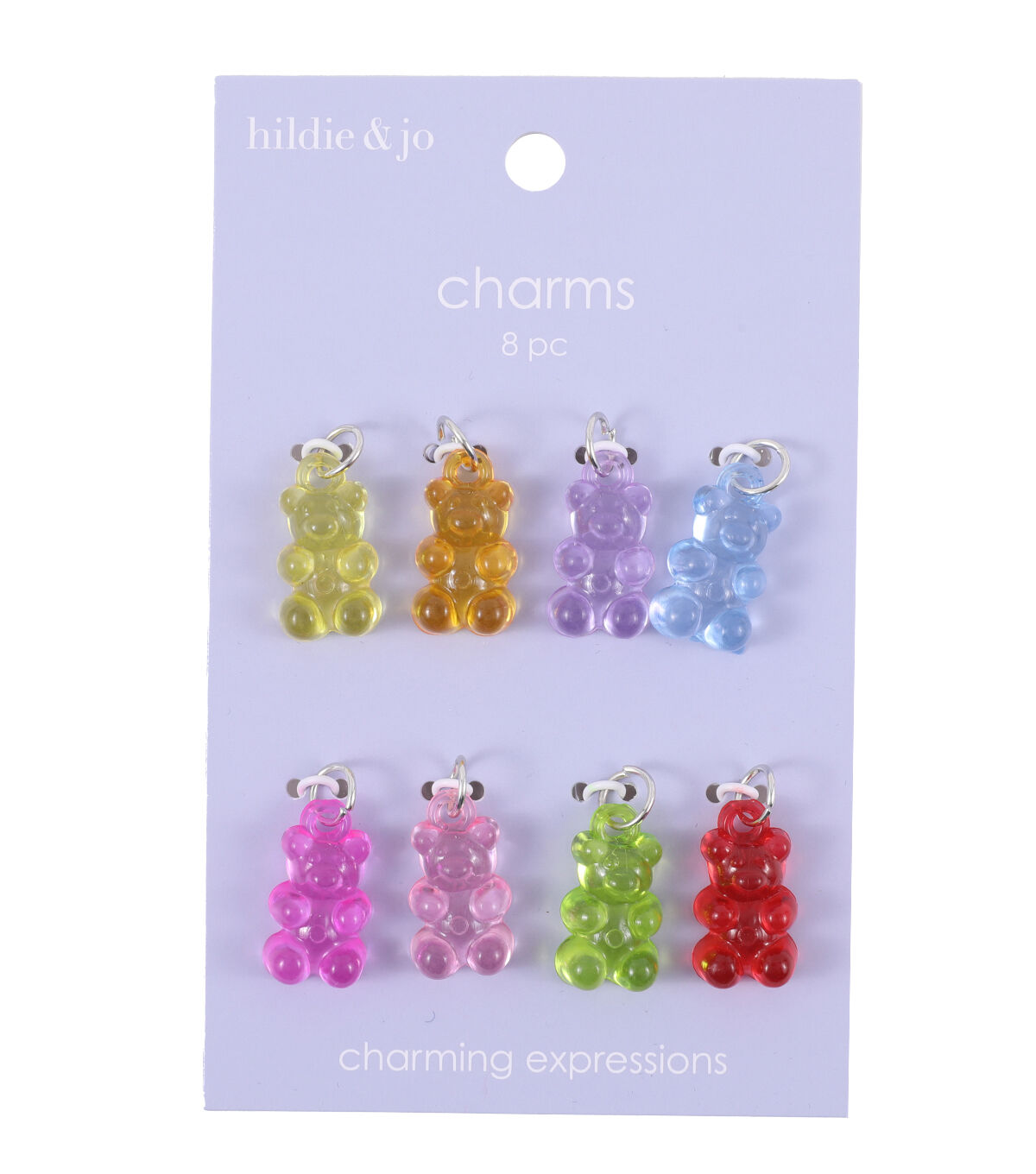 Get ready to add a pop of color and fun to your jewelry collection with these adorable 8ct Spring Multicolor Gummy Bear Charms by hildie & jo. These charms are perfect for those who love to add a playful touch to their accessories. The vibrant colors and cute design of these gummy bear charms are sure to catch everyone's attention.
