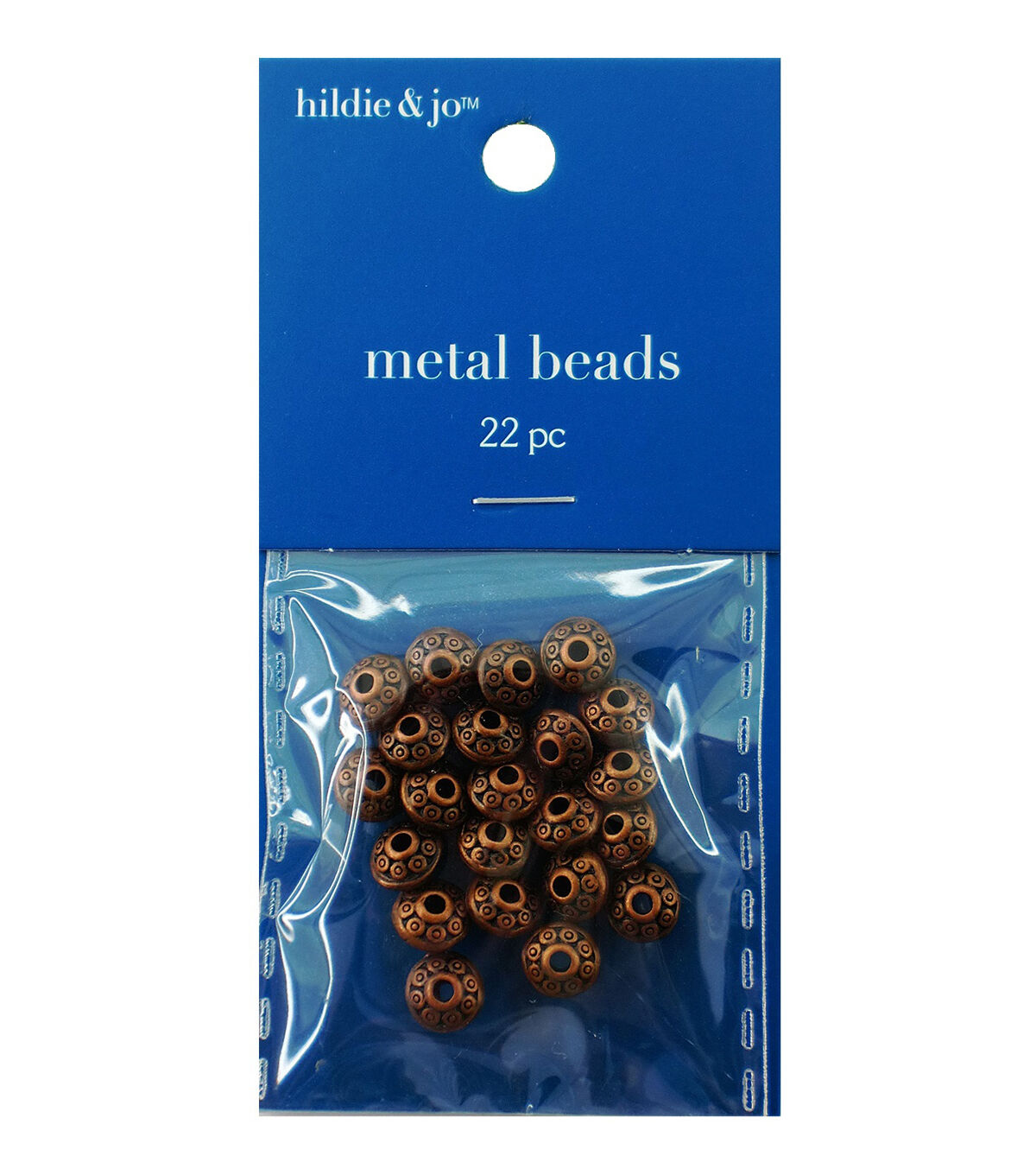 Add the hildie & jo Rondelle Metal Beads - Copper to your next DIY project. This pack contains 22 rondelle metal beads in a lovely copper tone. These 8 mm beads sport a dot pattern going around the top. You can use them together or with other beads.