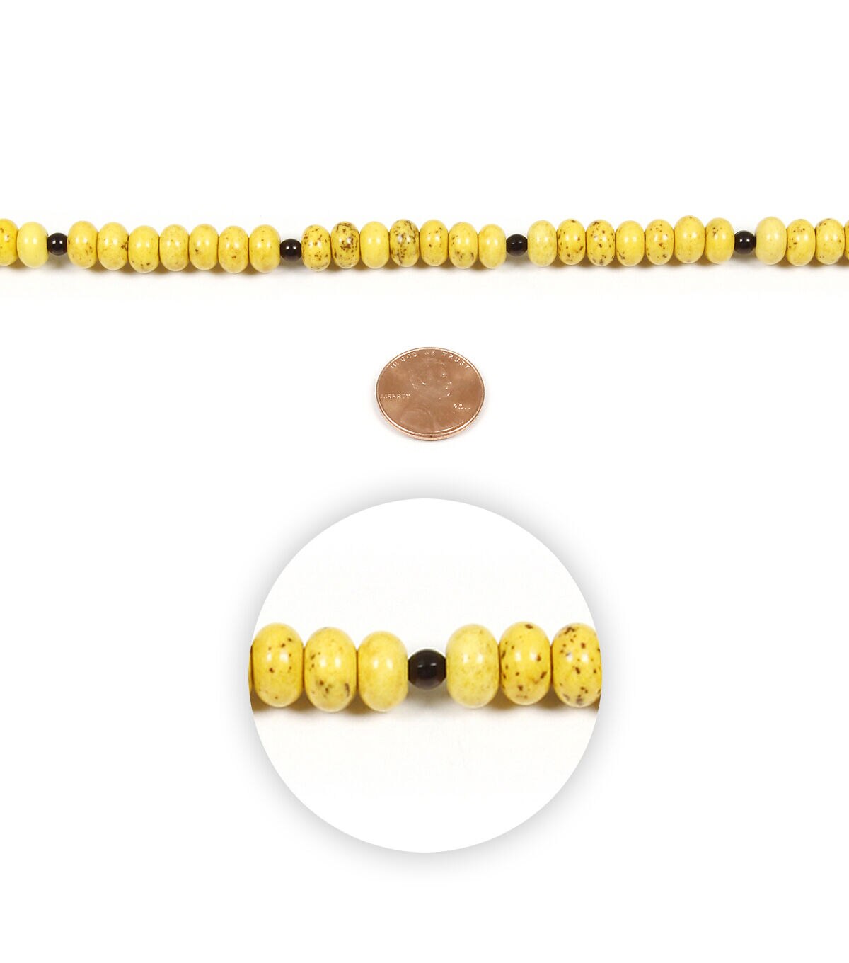 Accentuate your handmade jewelry pieces with the hildie & jo Natural Stone Bead Strand - Sunny Yellow. This pack includes lovely, uniformly shaped 8-mm stone beads in rich yellow with a tinge of brown. Small round black spacer beads measuring 4 mm are also included in this pack. Combine them with beads, chains and other jewelry elements to make your own uniquely creative designs.