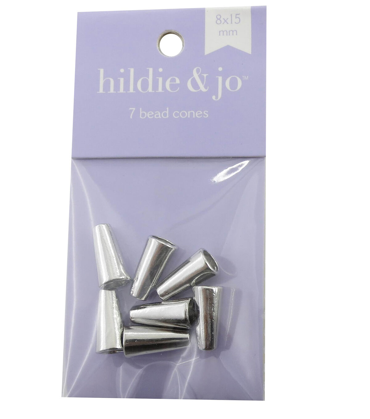 hildie & jo Metal Bead Cones in silver. The Cones have a plain design dimensions are 8x15mm. 7 Pieces.