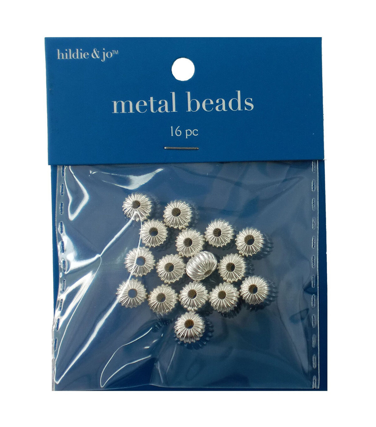 The hildie & jo Corrugated Metal Beads - Silver will make a great addition to your next jewelry project. These beads sport a silver tone and are designed with corrugated ridges. Team them with other beads to add color, texture and dimension to your project. This pack includes 16 pieces.