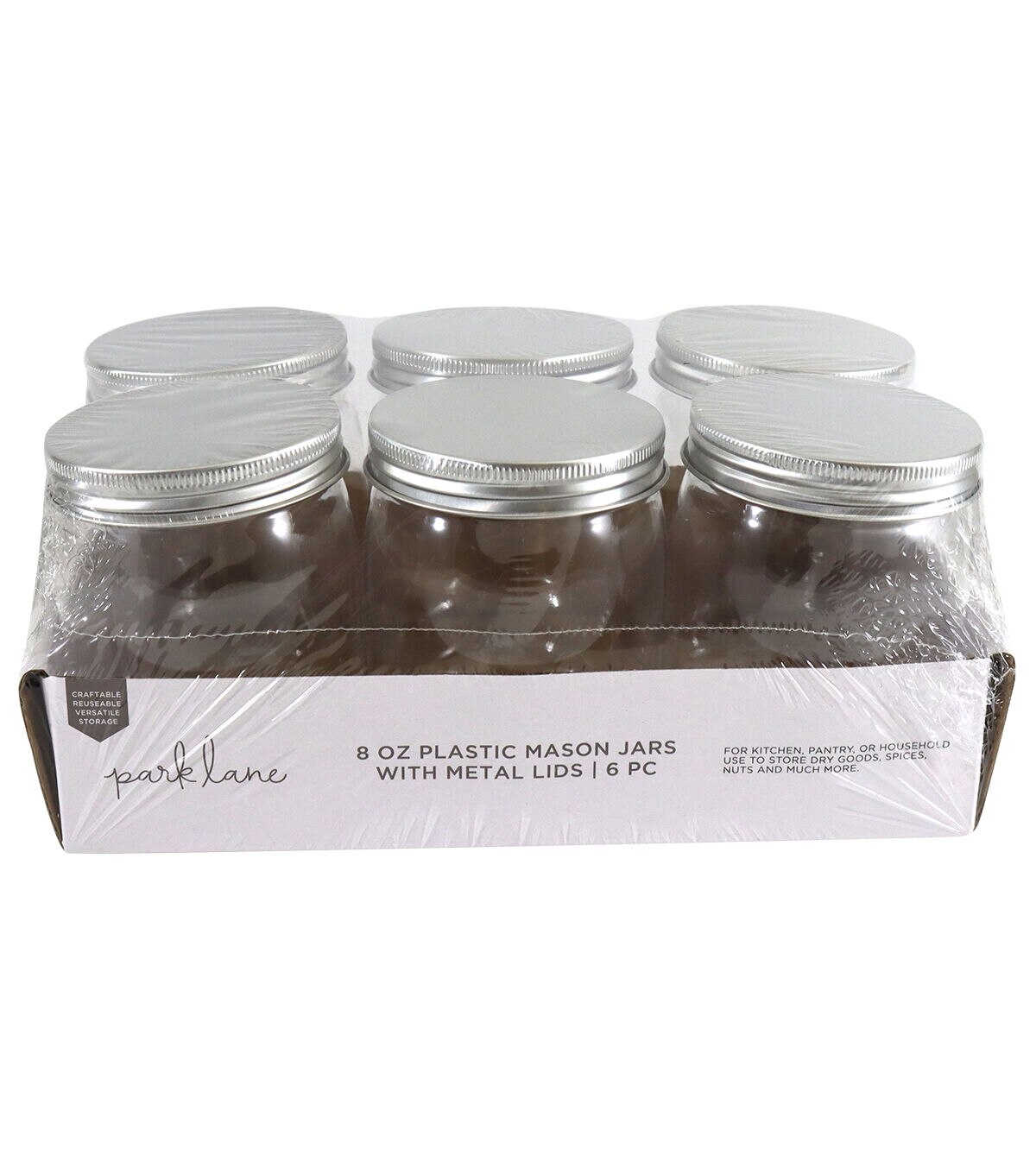 Get started on your crafting journey with the Park Lane Plastic Mason Jars with Metal Lids. This pack includes six mason jars that are made of plastic. Color them in bright hues and showcase them on the coffee table to create a striking display. You can also use them for storing craft supplies including chalks, erasers, buttons and more.