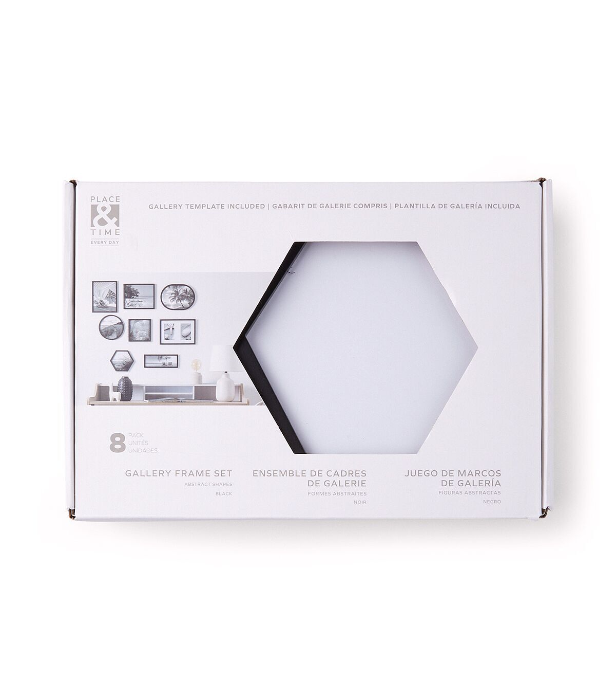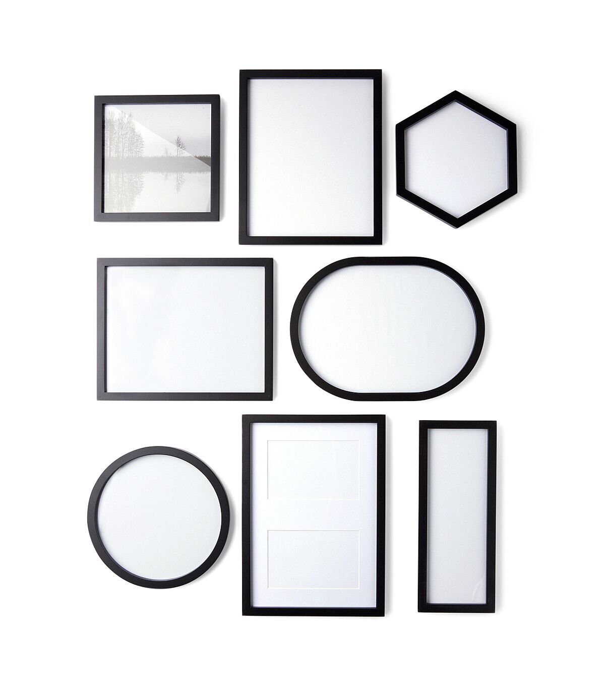 Elevate the look of your home with the contemporary and eclectic 8pk Black Abstract Shape Gallery Frame Set by Place & Time. This set features an array of abstract frames that allow you to create a unique and personalized gallery wall that reflects your individual style. With the flexibility to arrange the frames in multiple orientations, you have the creative freedom to switch up your displays as often as you like.
