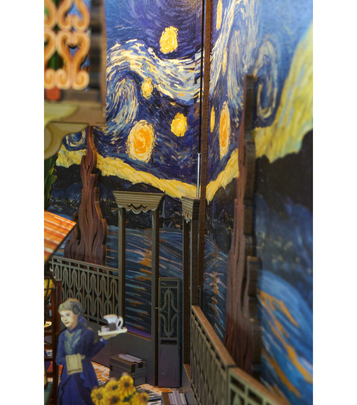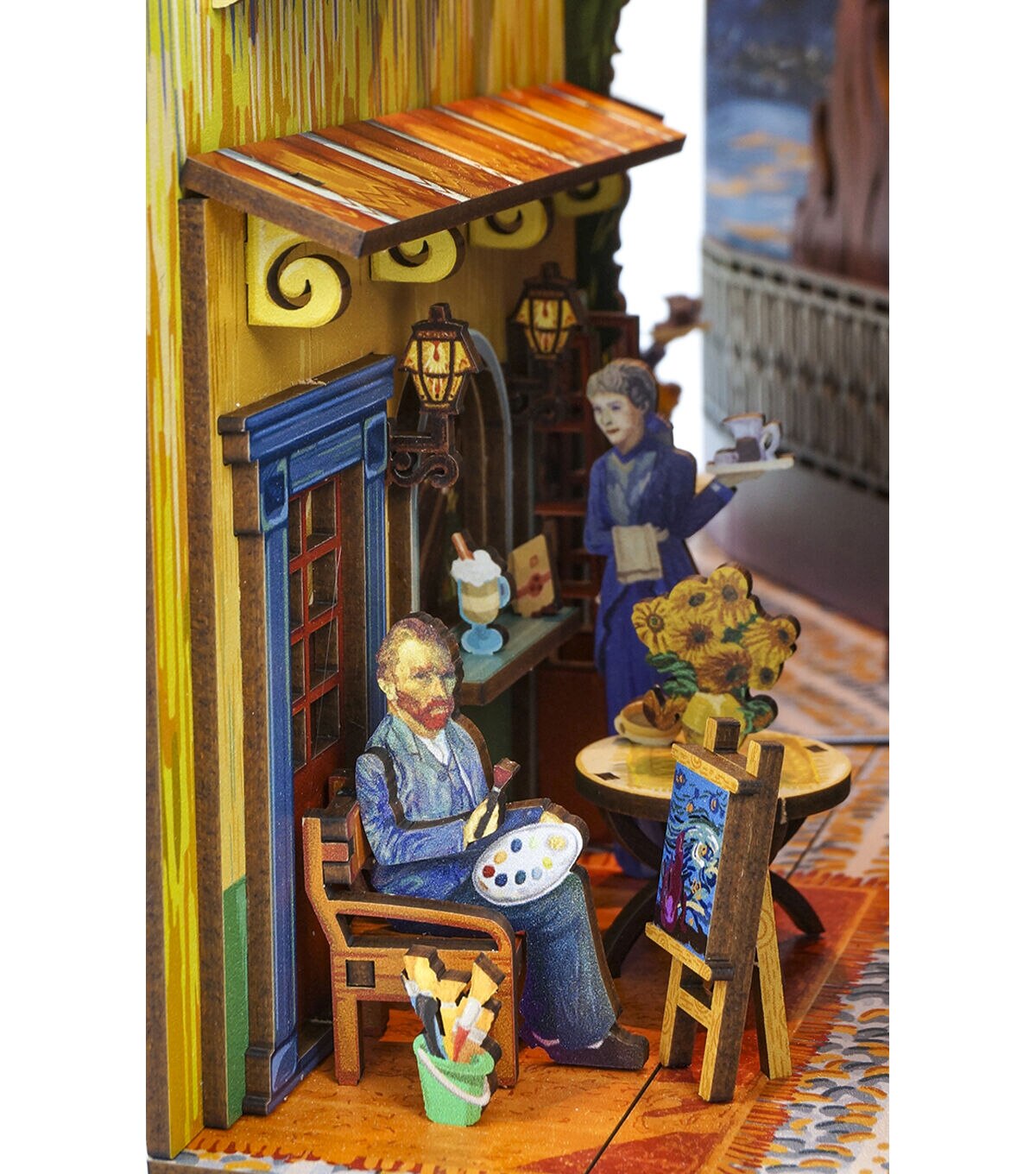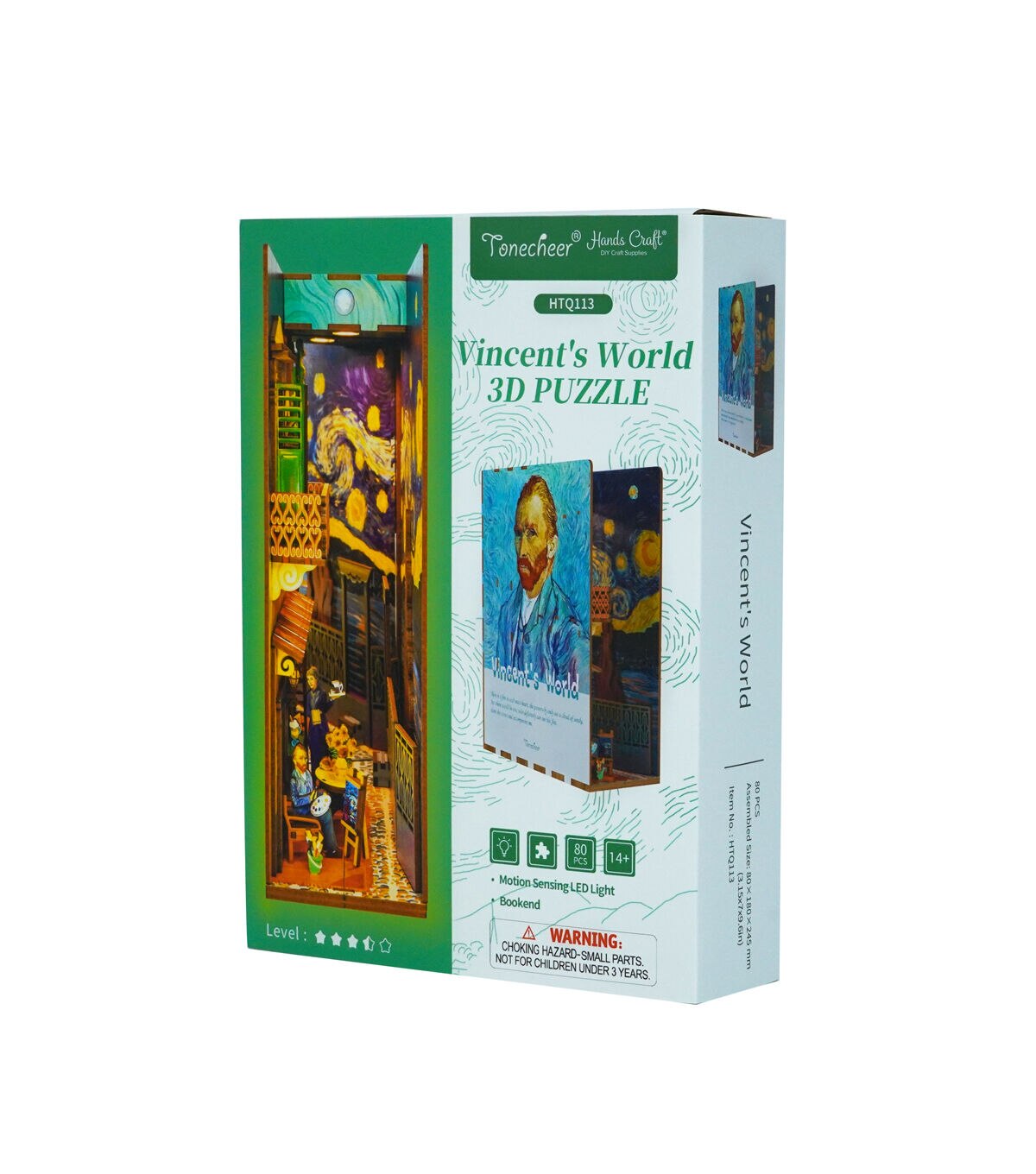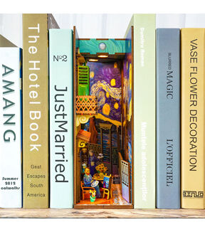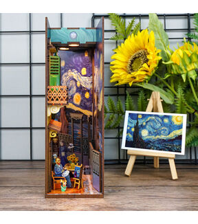 This meticulously crafted book-nook kit showcases a rich palette of vivid, eye-catching colors, reminiscent of the bold strokes and vibrant hues characteristic of van Gogh's iconic works. Each hue exudes its own unique vibrancy, echoing the emotional intensity that defined the artist's masterpieces. The kit's construction is characterized by its impressive thickness and sturdiness. Assembling this enchanting piece is a seamless and gratifying experience, with every detail meticulously designed for ease and satisfaction, mirroring the meticulous attention van Gogh gave to his own creations. Furthermore, it incorporates motion-sensing technology, adding an element of interactivity, and is thoughtfully designed to be powered by batteries, ensuring flexibility in placement and use, just as van Gogh's work transcends time and place to resonate with audiences worldwide. [AMBIENT LIGHT] Featuring a SMART SENSOR and WARM LED LIGHT, this product not only elevates the aesthetic charm of your bookshelf insert but also extends a warm greeting each time you draw near. With a sensor range of 20 inches, the LED light will seamlessly illuminate upon detection and gracefully fade out after 1 to 2 minutes, ensuring a delightful and energy-efficient experience. Was this response better or worse? Recommended for ages 14+