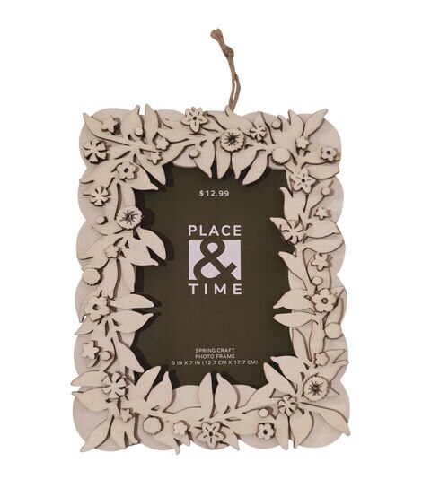 The Spring Unfinished Wood Floral Picture Frame by Place & Time will make an interesting addition to your spring home decor. This photo frame is made of wood and is designed with cutout accents shaped like flowers and leaves. You can accentuate it with paint and glitter, and use the finished version to display a cherished image of a loved one.