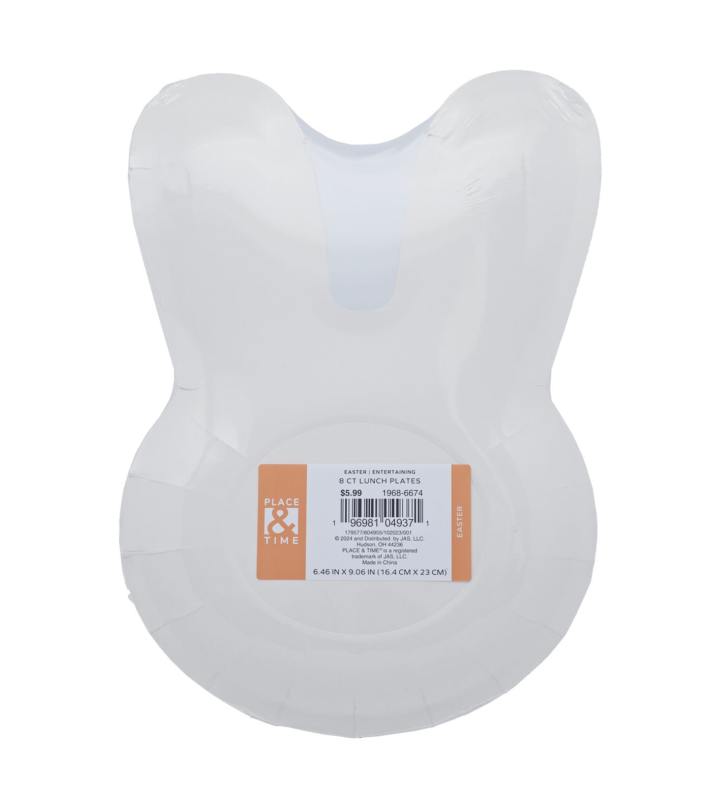 Create a beautiful Easter-inspired tablescape with the Easter White Bunny Paper Lunch Plates by Place & Time. These paper plates are shaped like bunnies and sport white and pink shades. They are perfect for serving meals, desserts and more. You can team them with matching napkins for visual flair. This pack contains eight lunch plates.