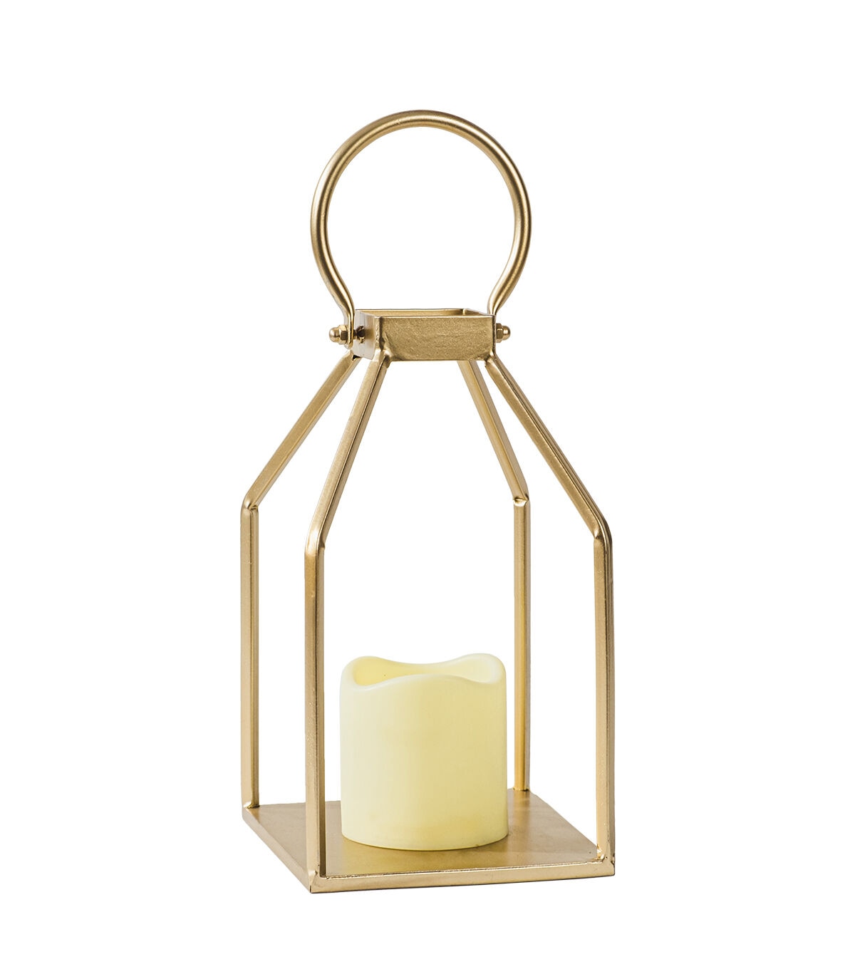 9" Gold Cutout Lantern With LED Candle by Place & Time