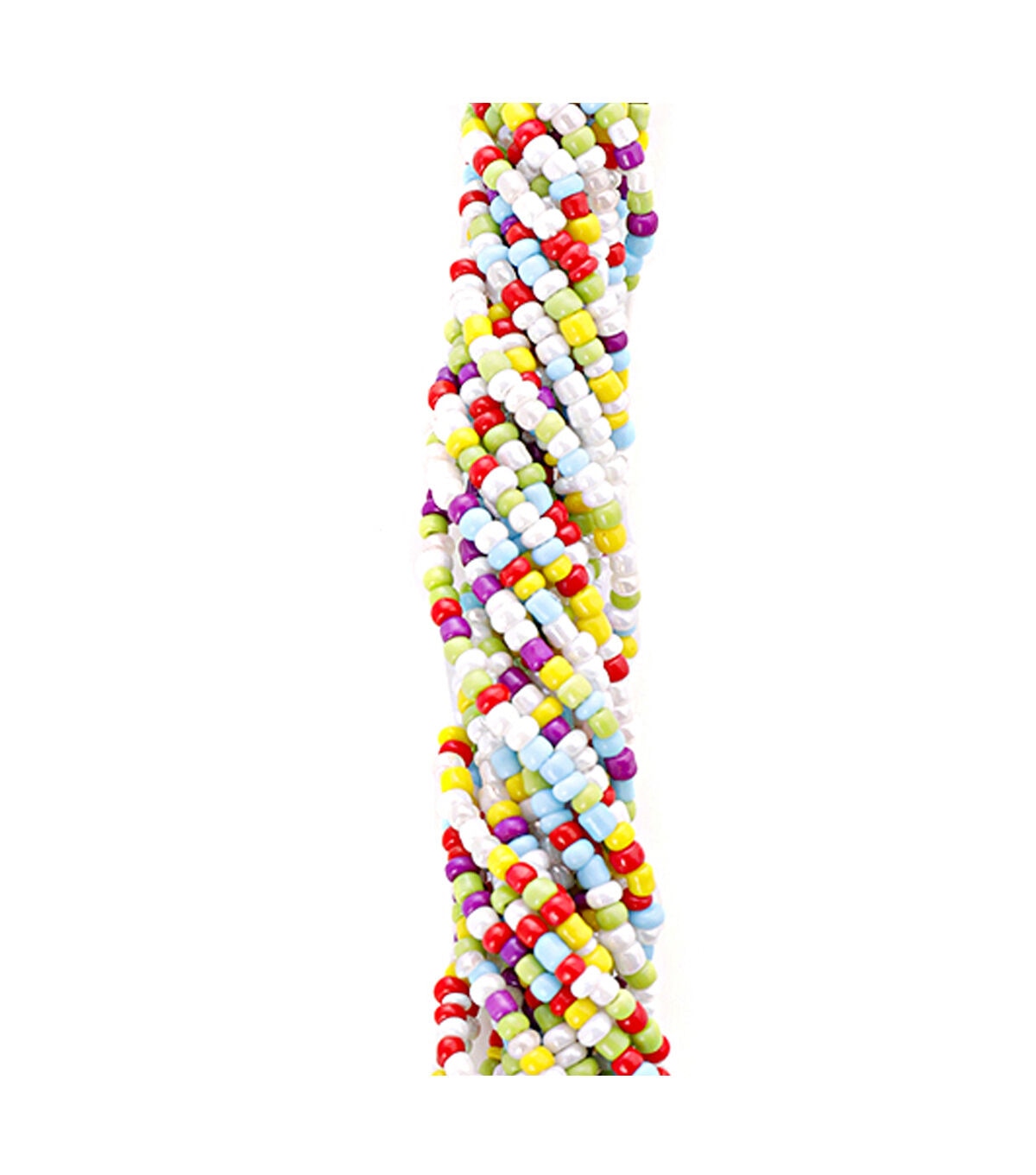 Design pretty jewelry pieces for special occasions using the hildie & jo Glass Seed Strung Beads - Multi. This pack contains multiple strands of seed beads made of glass and sporting vibrant colors. Pair them with delicate shells and charms for added visual beauty.