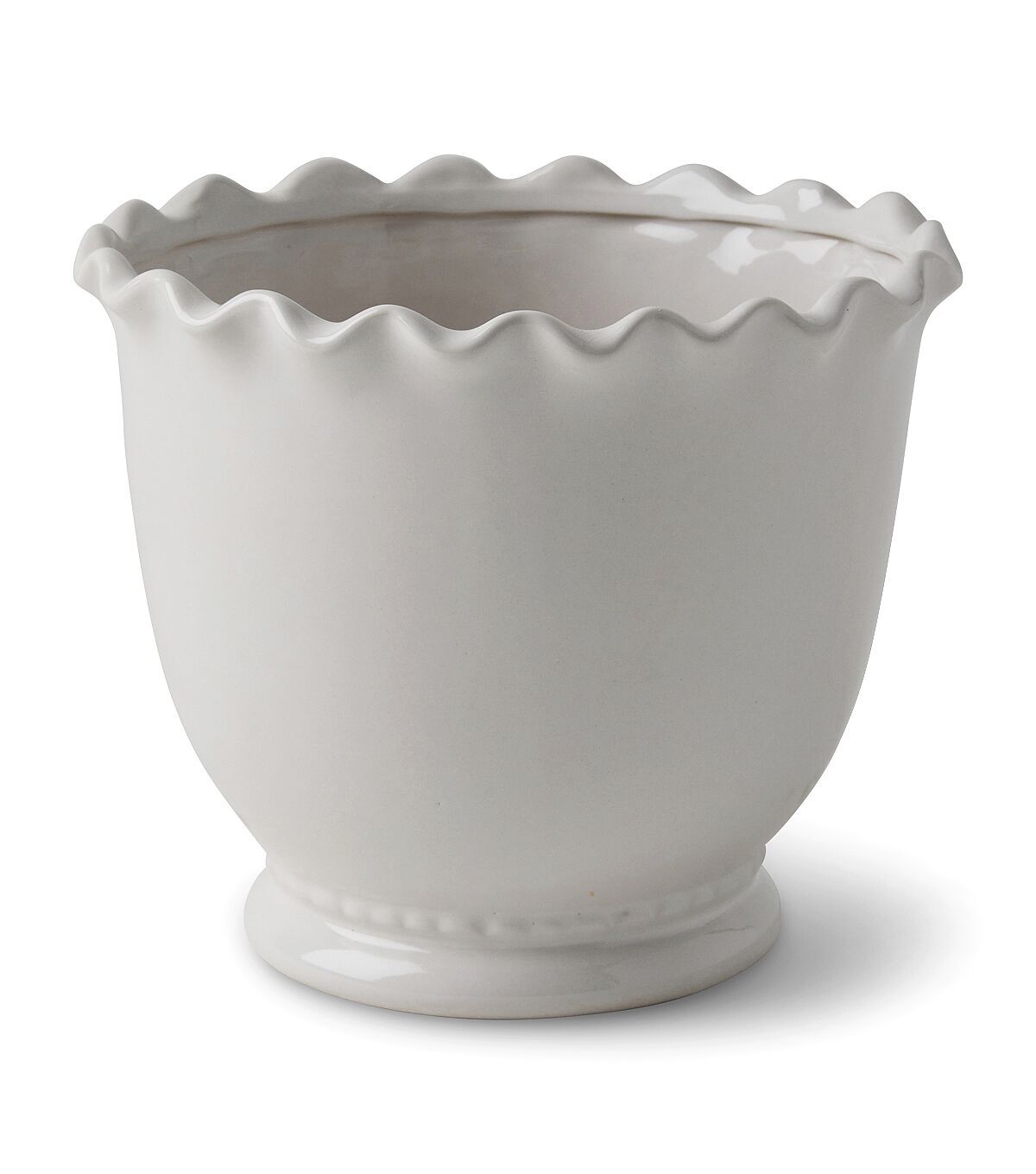 The Spring Ceramic Planter With Scalloped Edge by Place & Time will blend right into your minimalistic home decor theme. This ceramic planter in white is designed with a scalloped edge. Plant your favorite seasonal beauties in it and display it on a table next to a window or on the balcony. You can also team this planter with others for added charm.