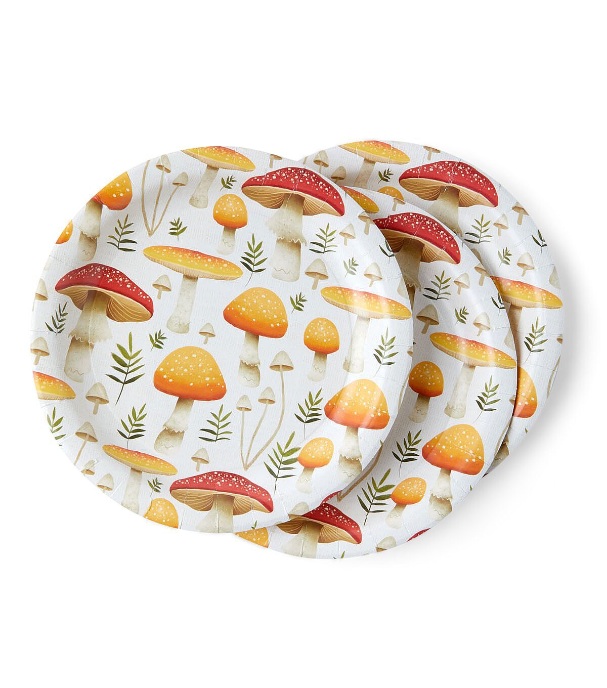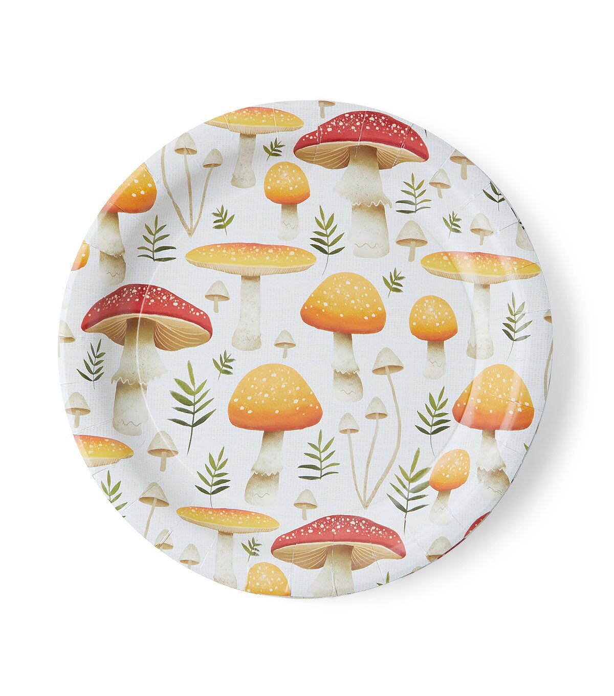 Delight your guests with a scrumptious dinner served on the Spring Orange Mushrooms on White Dinner Plates by Place & Time. This pack includes eight paper plates. These dinner plates sport a white shade and a lovely print of mushrooms and leaves. You can team them with coordinating napkins, sold separately, to set the table right.