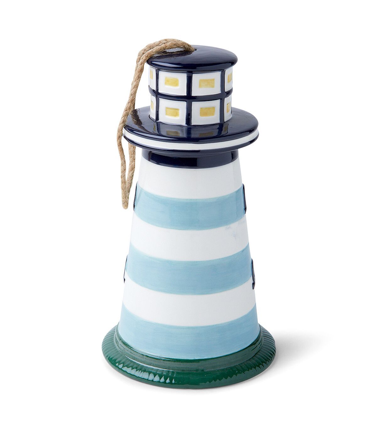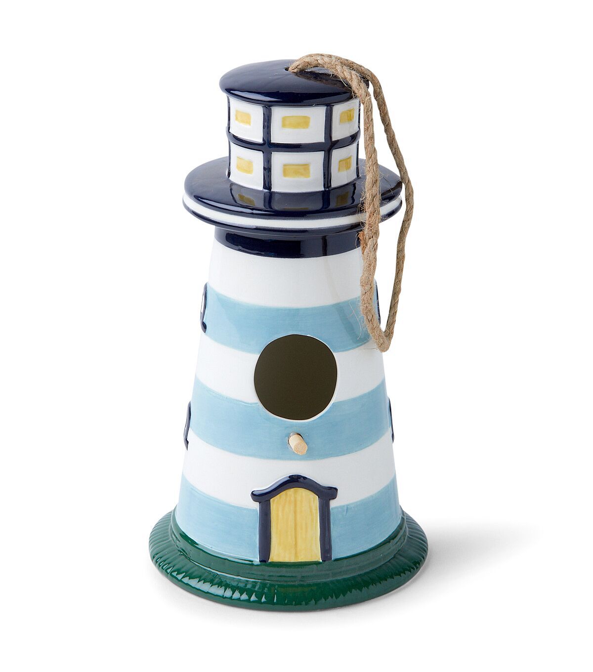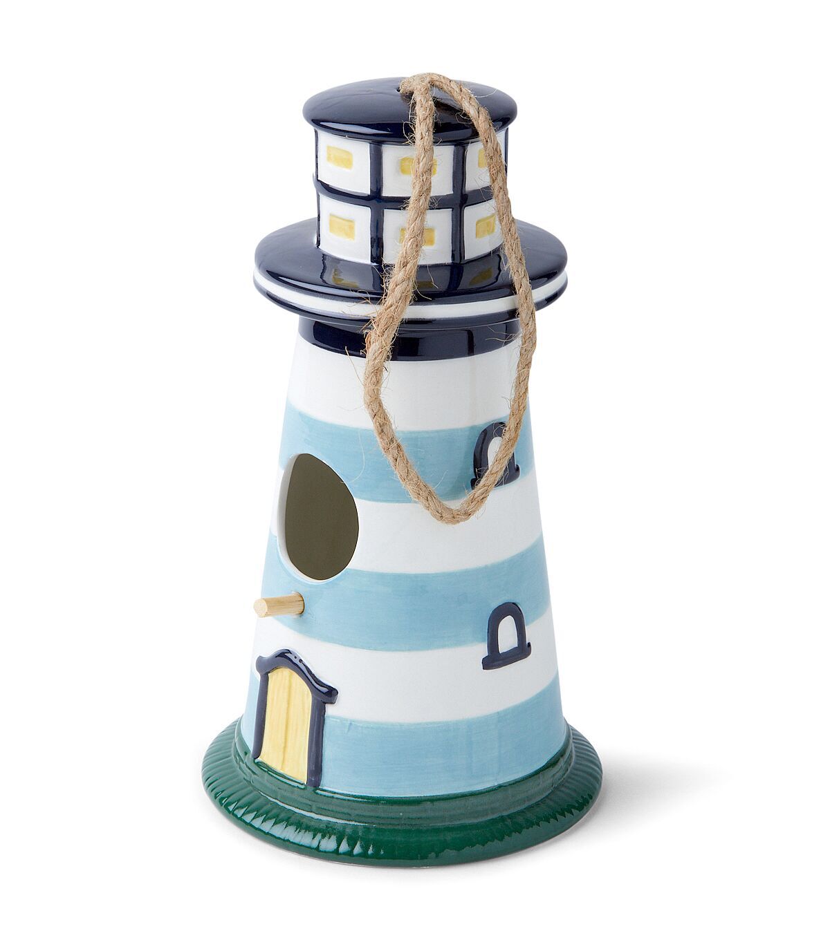 Bring the Beach to Your Backyard with the 9" Summer Blue Striped Ceramic Lighthouse Birdhouse by Place & Time