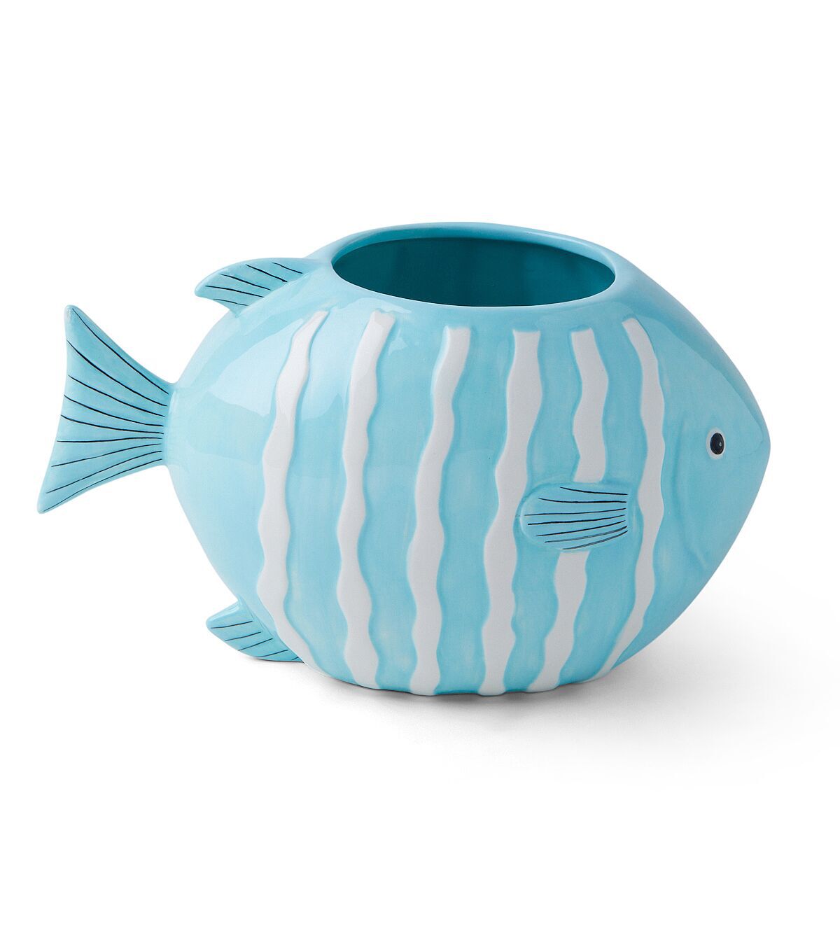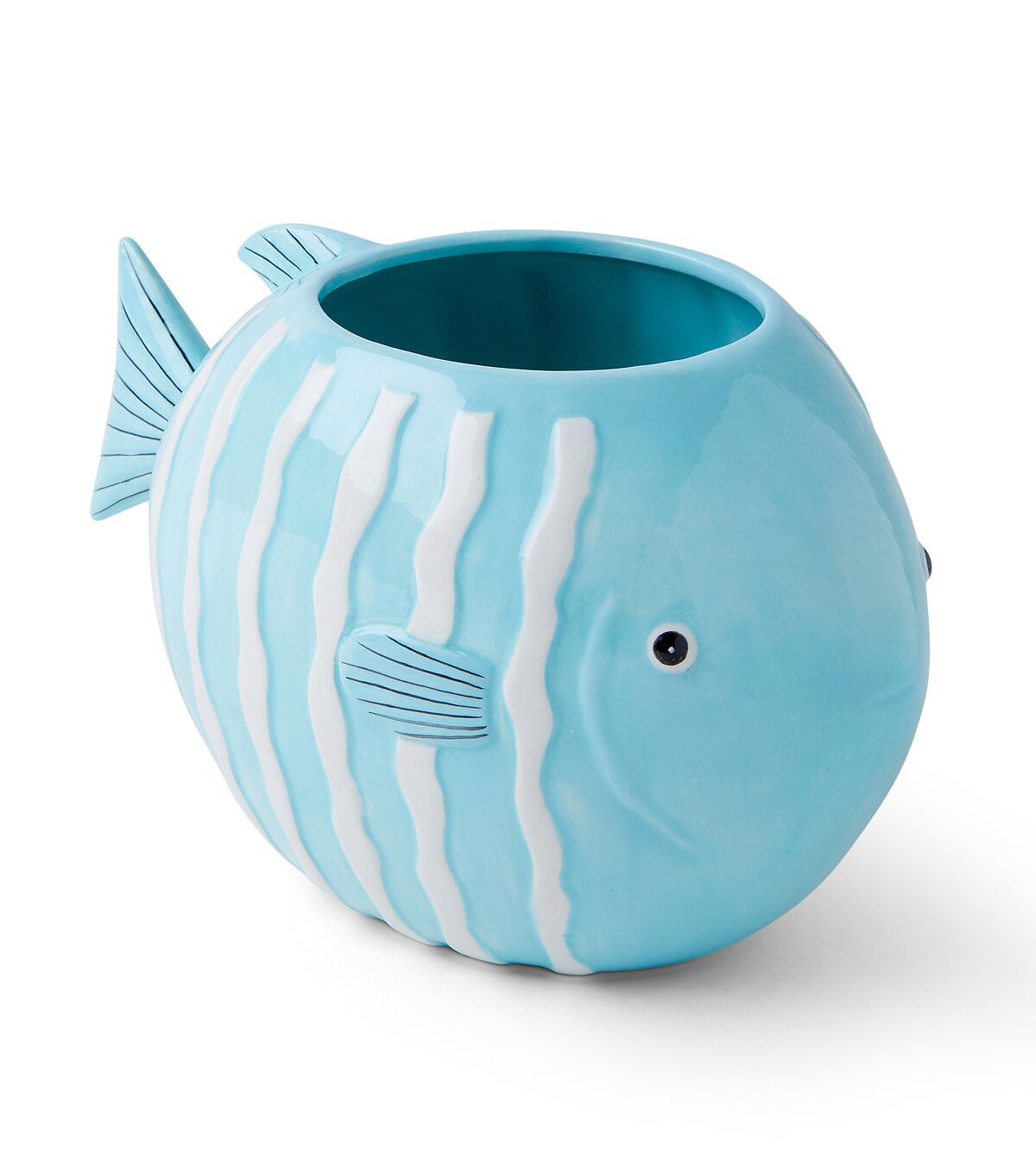 Bring a Touch of the Ocean to Your Home with the 9" Summer Blue & White Ceramic Fish Planter by Place & Time